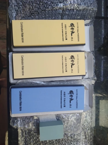 Долетели быстро, за пару недель в Уфу. Упаковано отлично, даже коробки не помялись. Качество камней на высоте. Думал что зернистость будет ниже заявленной, как у других китайских камней, поэтому взял повыше, 800 и 3000. Но они соответствуют заявленной зернистости. 800 камень для восстановления убитых ножей мелковат. Ещё 400 буду заказывать. Рекомендую!