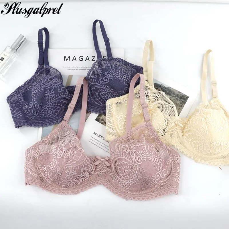 Бюстгальтер кружевной, мягкий, с цветочным принтом, чашка B, C, D