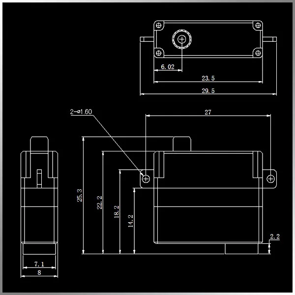 Товар: CLS0309WV или CLS0309WHШестерня: полностью металлическаяСплайн: ЭксклюзивныйДвигатель: Бессердечный двигательПодшипник: 2BBМертвый диапазон: 2 мкс по умолчаниюВодонепроницаемость: НетРабочее напряжение: DC5.0 ~ 8,4 вРабочая частота: 1520 мкс/330 ГцХарактеристика:-- Высокая производительность, микро цифровой сервопривод крыла-- Высокоточные матальные шестерни (медь + титаниум)-- Высококачественный Бессердечный мотор-- Полностью CNC алюминиевые корпуса и структураУльтратонкая толщина-8 мм-- Двойные шариковые подшипникиСпецификация:Мертвый диапазон: 2 мксРабочая частота: 1520 мкс/330 ГцРабочее напряжение: DC3.5 ~ 8,4 вРабочая скорость (3,5 В):0.16 сек/60 градусовОперационной Скорость (5,0 V):0.10 сек/60 градусовОперационной Скорость (6,0 V):0.08sec/60 градусовРабочая скорость (7,4 В):0. 07сек/60 градусовРабочая скорость (8,4 в):0. 06сек/60 градусовКрутящий момент, крутящий момент (3,5 V): 2,0 kg. См (27,78 унций/дюйм)Крутящий момент, крутящий момент (5,0 V): 3,0 kg. См (41,67 унций/дюйм)Крутящий момент, крутящий момент (6,0 V): 4,0 kg. См (55,56 унций/дюйм)Крутящий момент, крутящий момент (7,4 V): 4,5 kg. См (62,50 унций/дюйм)Крутящий момент, крутящий момент (8,4 V): 5,0 kg. См (69,45 унций/дюйм)Размеры: 23,5x8x20 мм (0.92x0.31x0.78in)Вес: 8,6g (0,30 oz)Длина провода соединителя: 120 мм