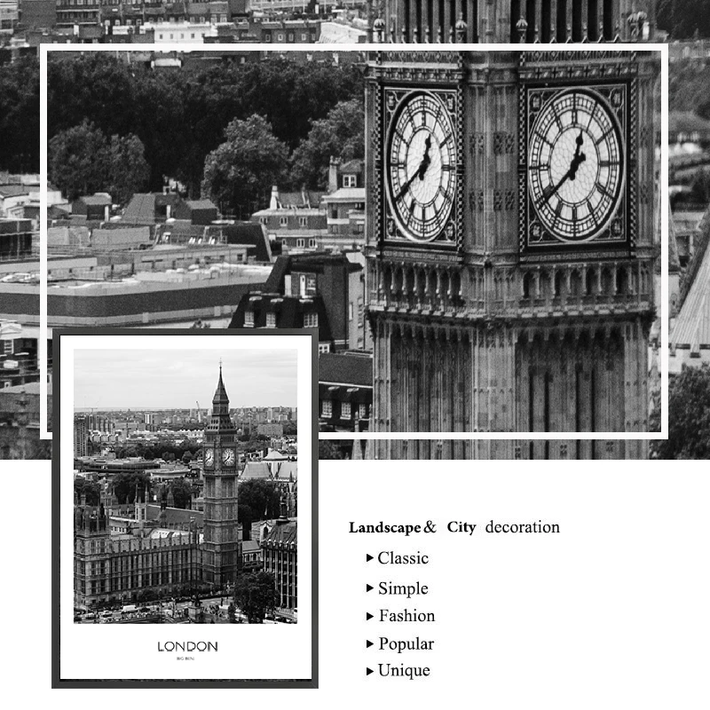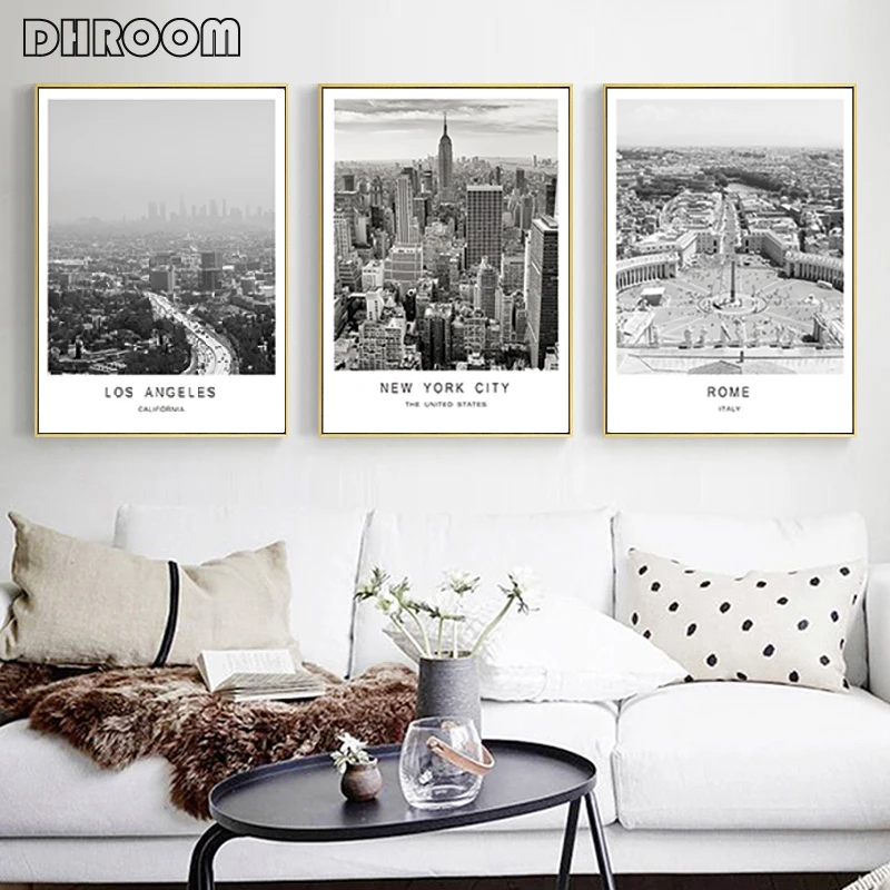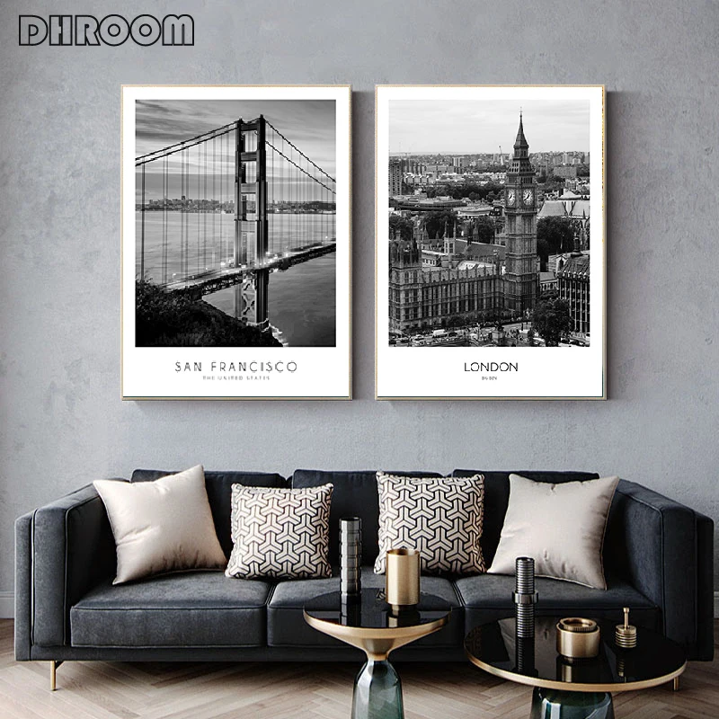 Картина черно-белая на холсте с изображением мирового городского пейзажа Парижа, Лондона, Нью-Йорка, Настенная картина в скандинавском стиле, домашний декор