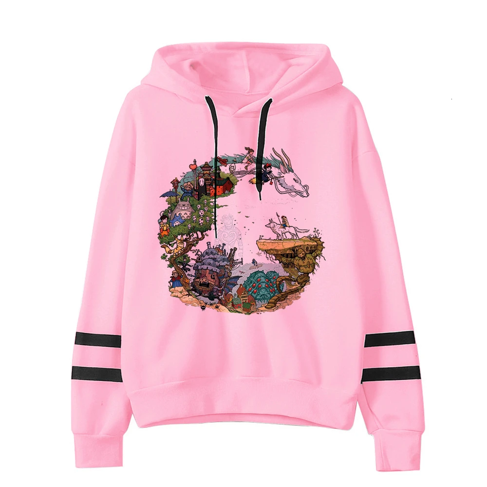 Женская толстовка с капюшоном totoro Spirit Away, забавная японская розовая толстовка с рисунком, kawaii harajuku, уличная женская одежда