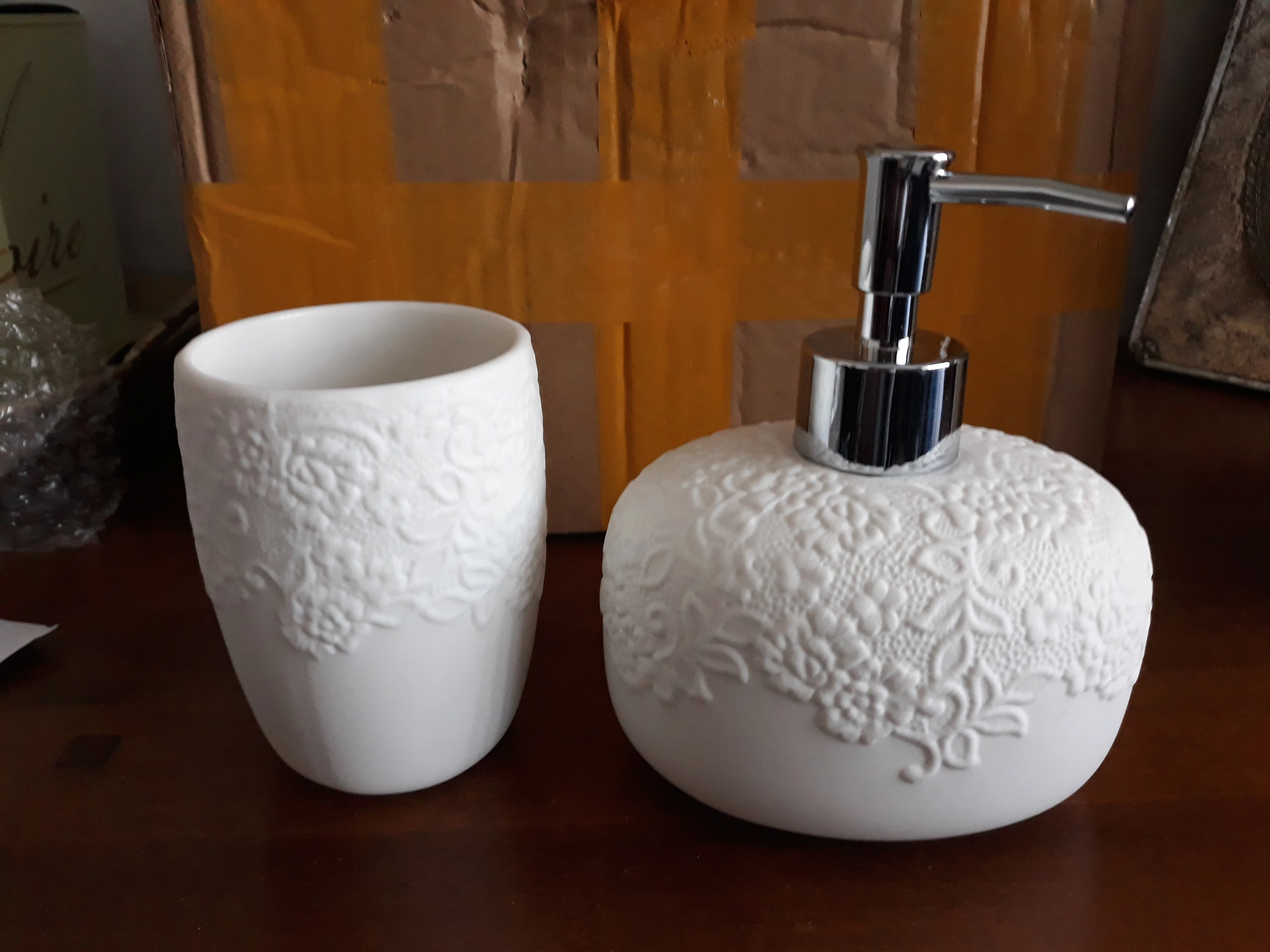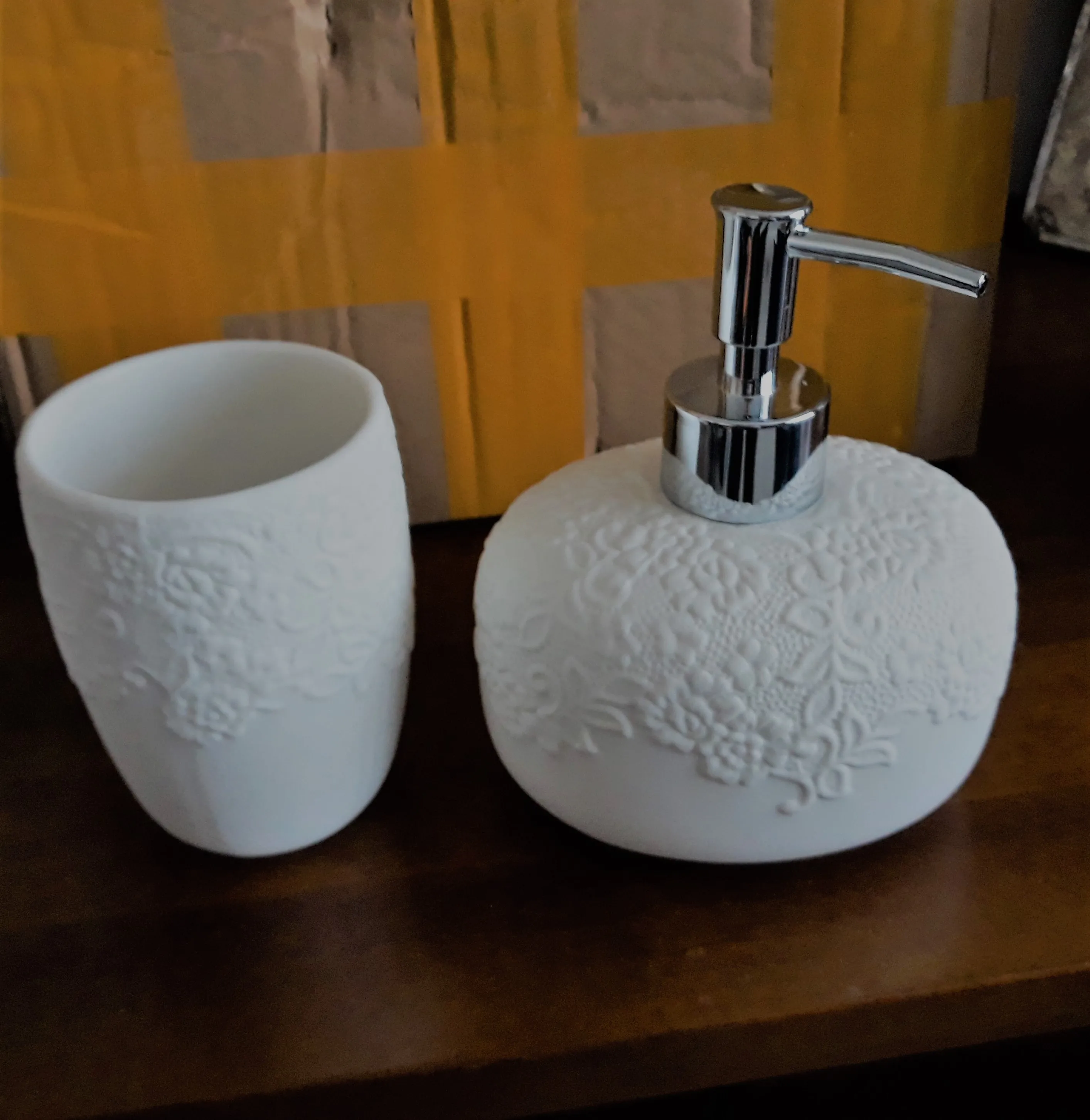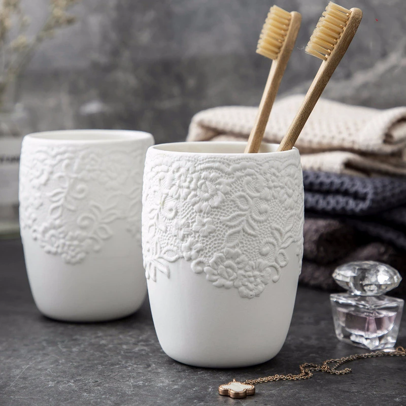 Набор для умывания, набор из 4 предметов, кружевной керамический держатель для зубных щеток, лосьона, мыльница, набор аксессуаров для ванной