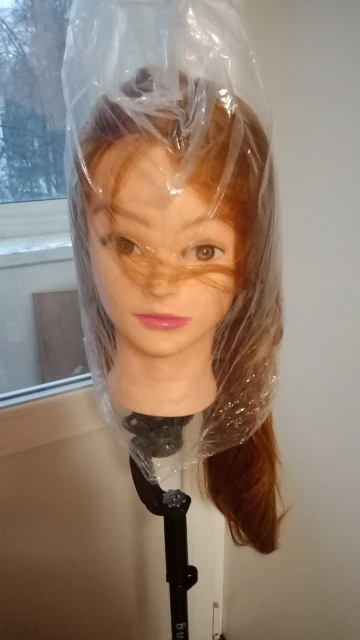 Маникен хороший,волосы густые. Посмотрим,как будет в работе... Проверим на качество завивки и окраски.