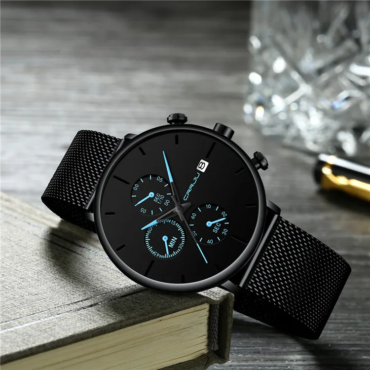 Часы CRRJU мужские, со стальным ремешком, кварцевые, военные, с хронографом, водонепроницаемые, спортивные