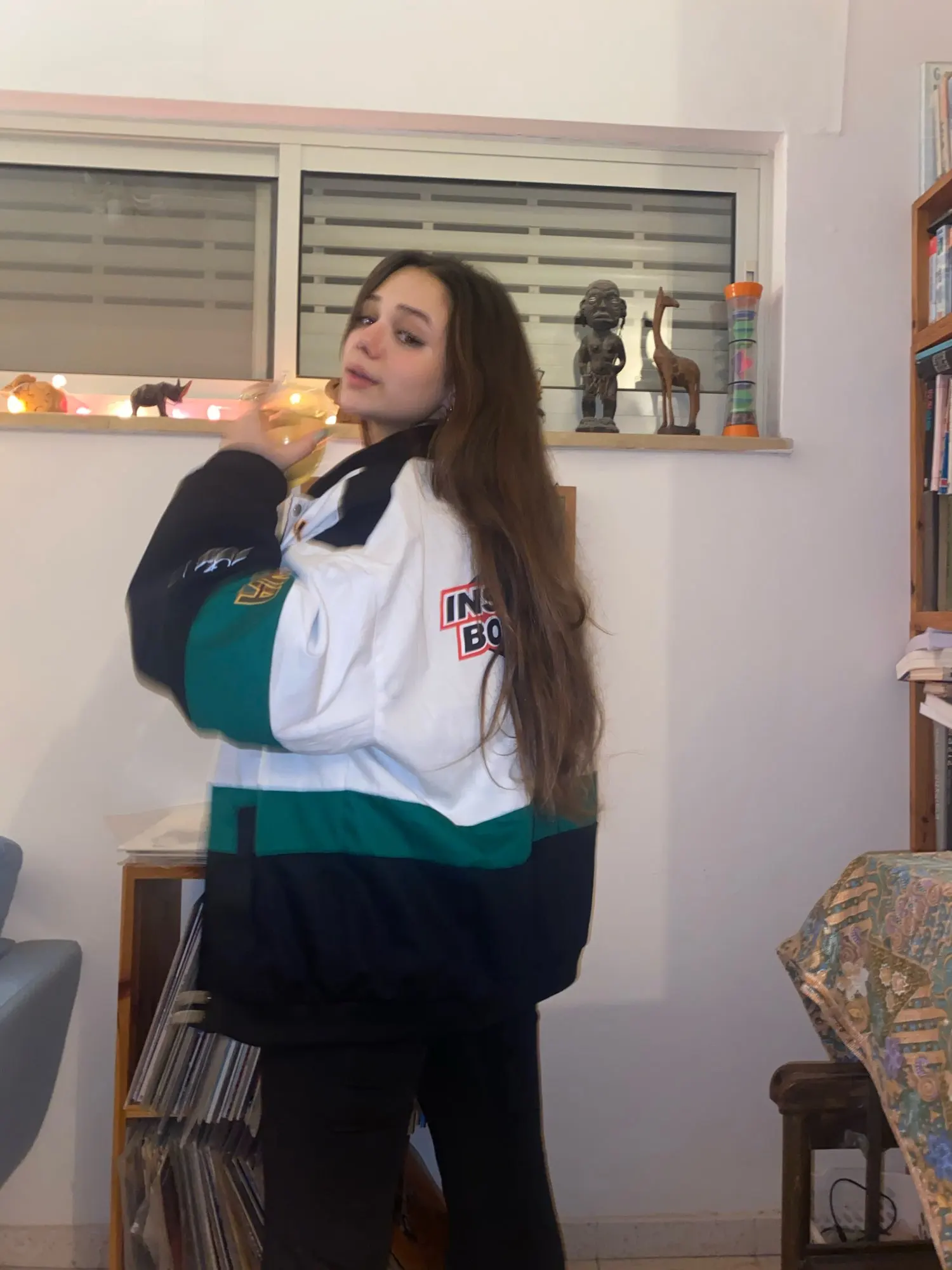 Пришла довольно быстро (чуть больше 2 недель). Трек отслеживался. На рост 171 взял М. В целом села нормально, но рукава длинноваты. Принты среднего качества, есть торчащие нитки, ткань тоже не супер качественная. Брал по скидке за 1900, за такую цену в качестве ветровки пойдёт. Единственное - если застегнуть, то надпись получается кривая, это огорчило. Продавец общительный, в подарок положил резиновый брелок.