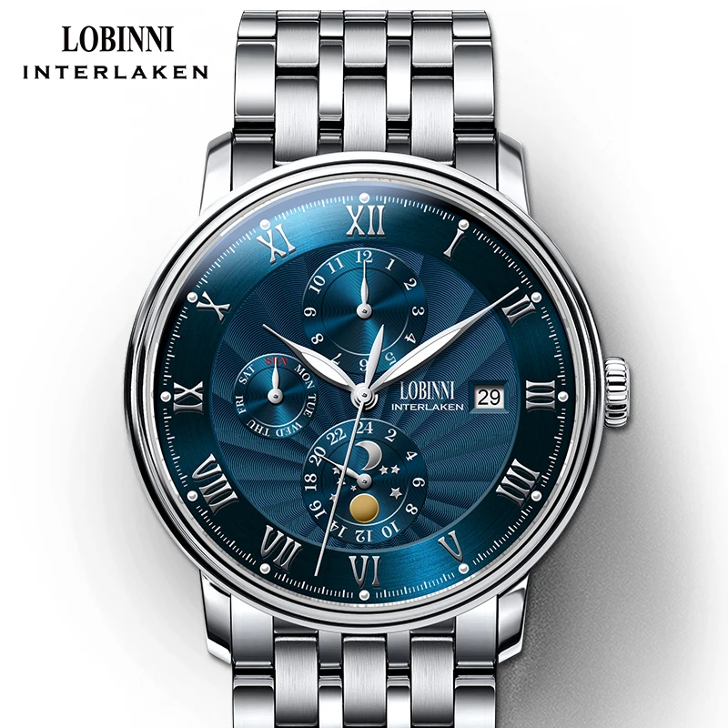 Switzerland LOBINNI мужские часы, роскошные брендовые автоматически...