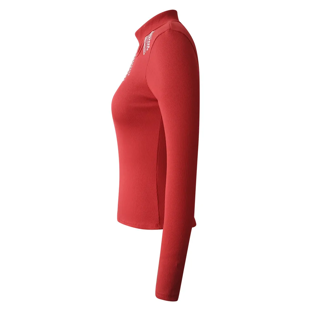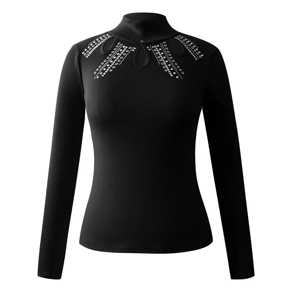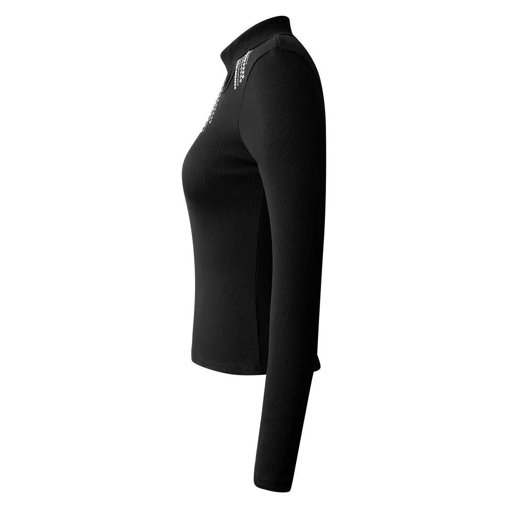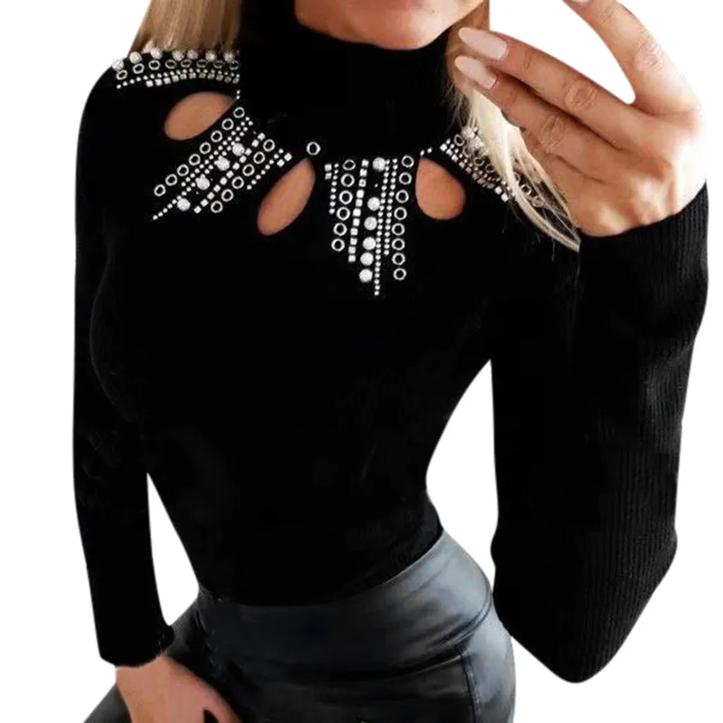 Модная женская блузка со стразами, Повседневная зимняя пикантная облегающая женская рубашка с круглым вырезом и длинным рукавом, пуловер