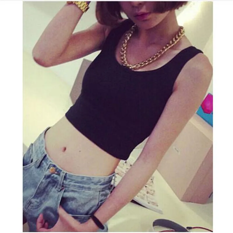 Женский облегающий Топ без рукавов, однотонный черныйбелый укороченный топ с U-образным вырезом, лето 2019