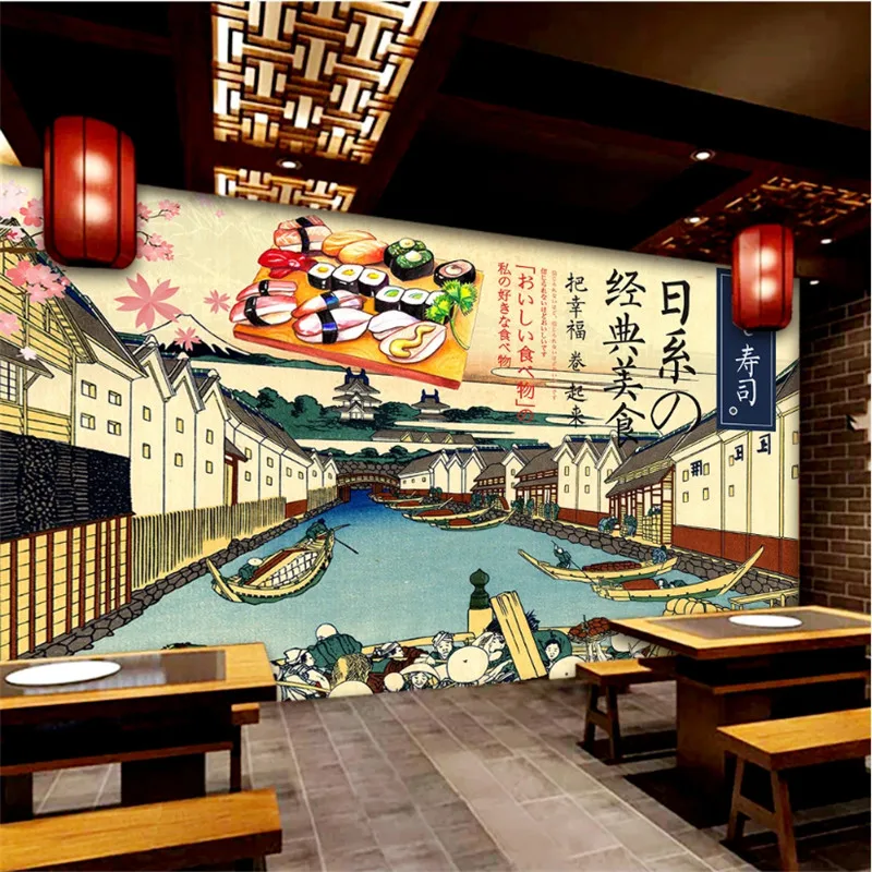 Ретро Ностальгический японский кухня суши фон для ресторана, обои на заказ индивидуальная настенная бумага для вашего ресторана