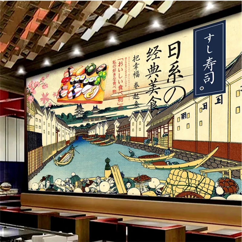 Японский стиль Ukiyo-e росписи суши тема настенная бумага 3D кухня ресторан промышленный Декор культура фон настенная бумага 3D