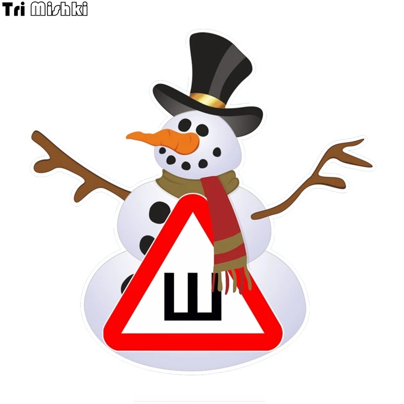 Tri Mishki WCS815 #14*14 см Знак Ш - Шипы на снеговике наклейки на авто ПВХ цветные стикеры на мотоцикл акссесуары наклейки