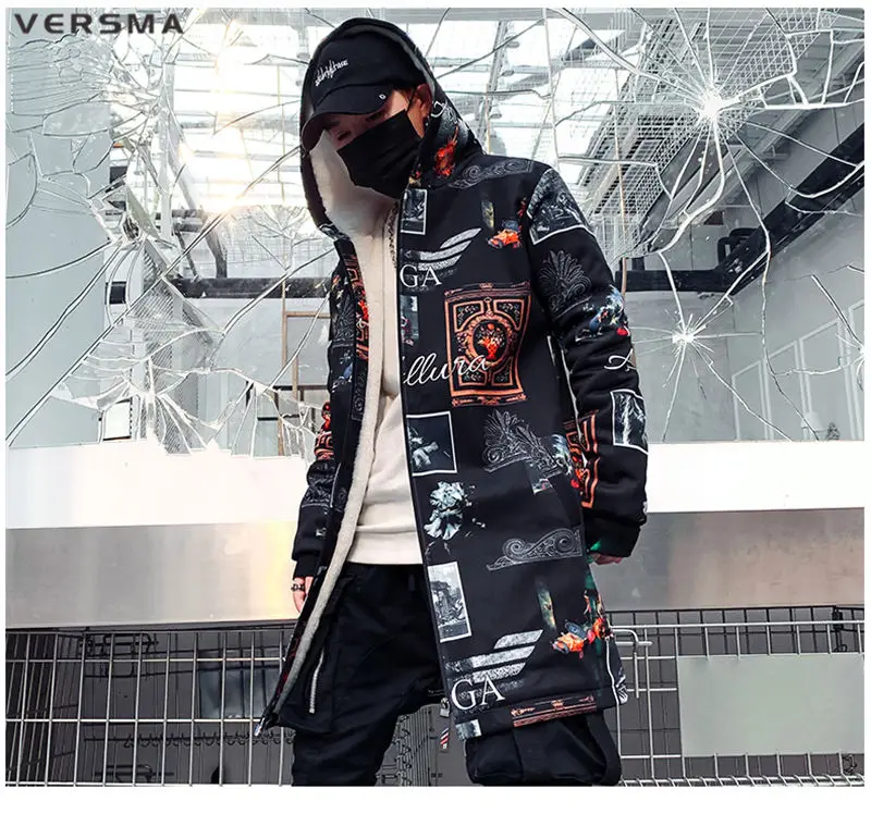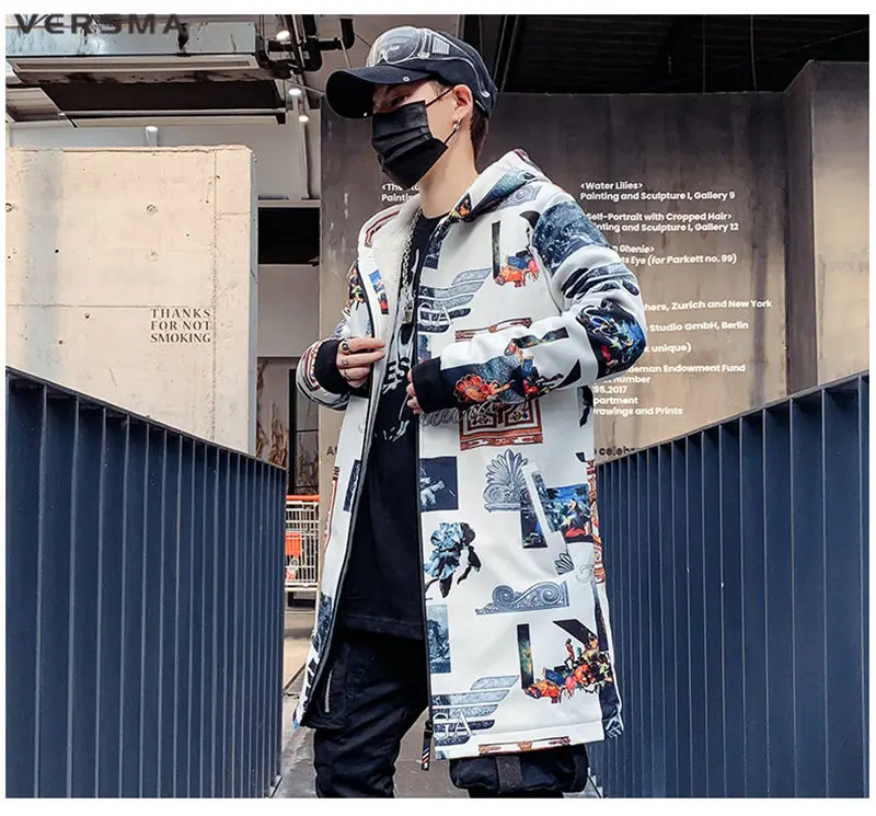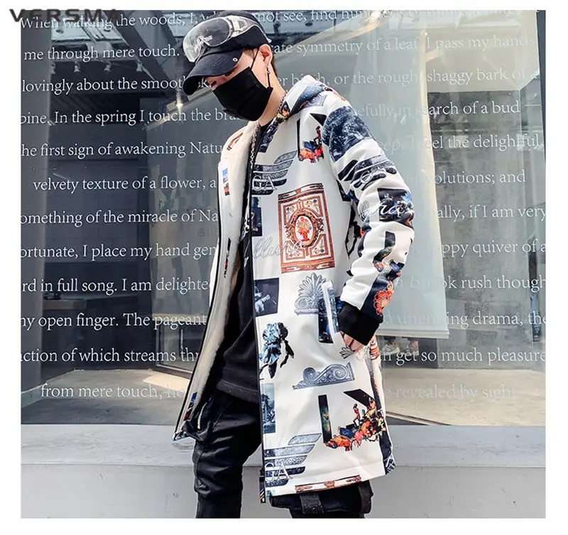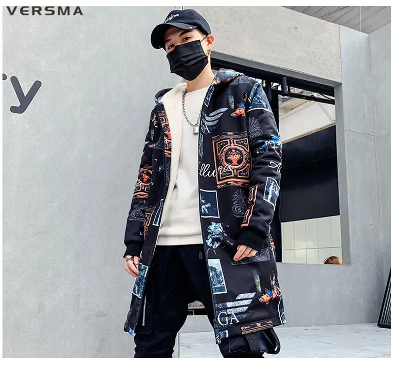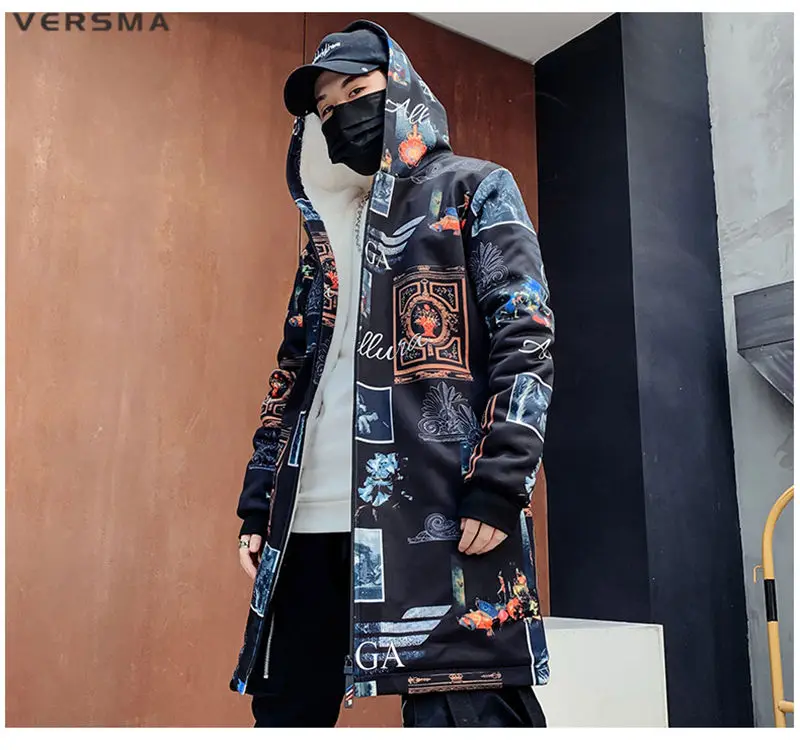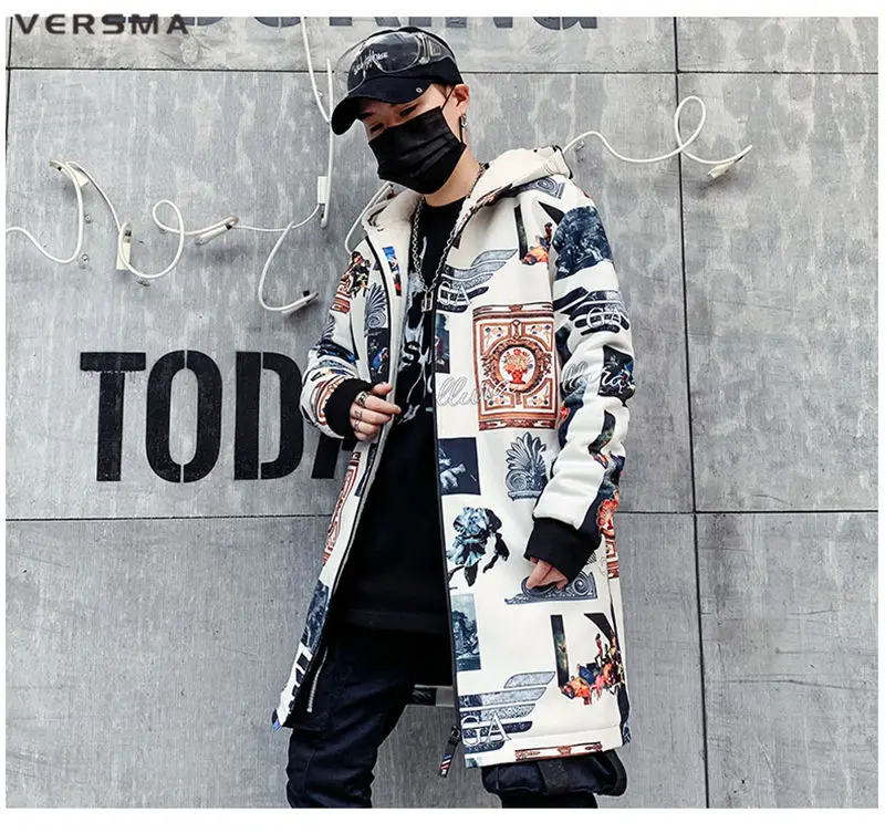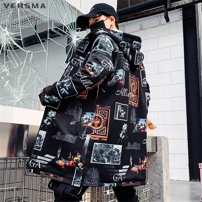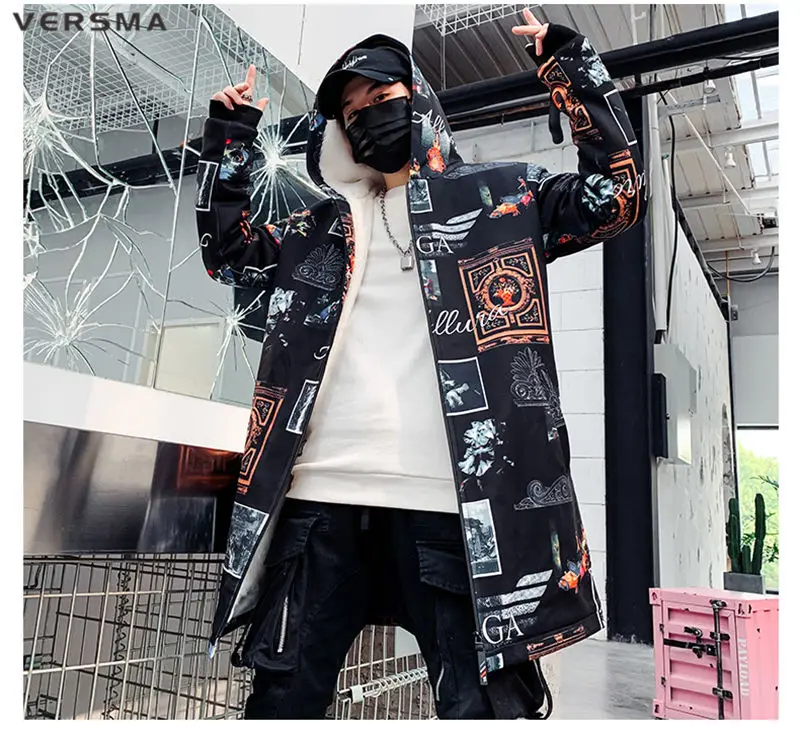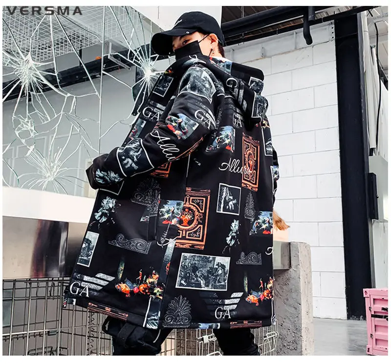 Куртка мужская длинная на молнии, с винтажным принтом, в стиле хип-хоп