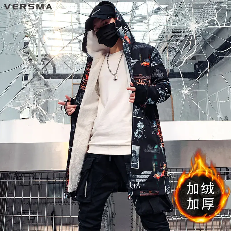 VERSMA теплая зимняя куртка с принтом горы, Мужская парка с меховым...