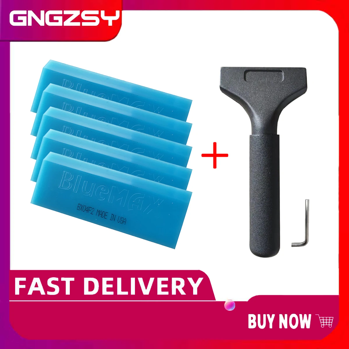 5 шт. запасных резиновых лезвий Bluemax + 1 шт. скребок для льда с ручкой из сплава автоматический скребок для нанесения винила Bluemax оптом B24 + 5B02