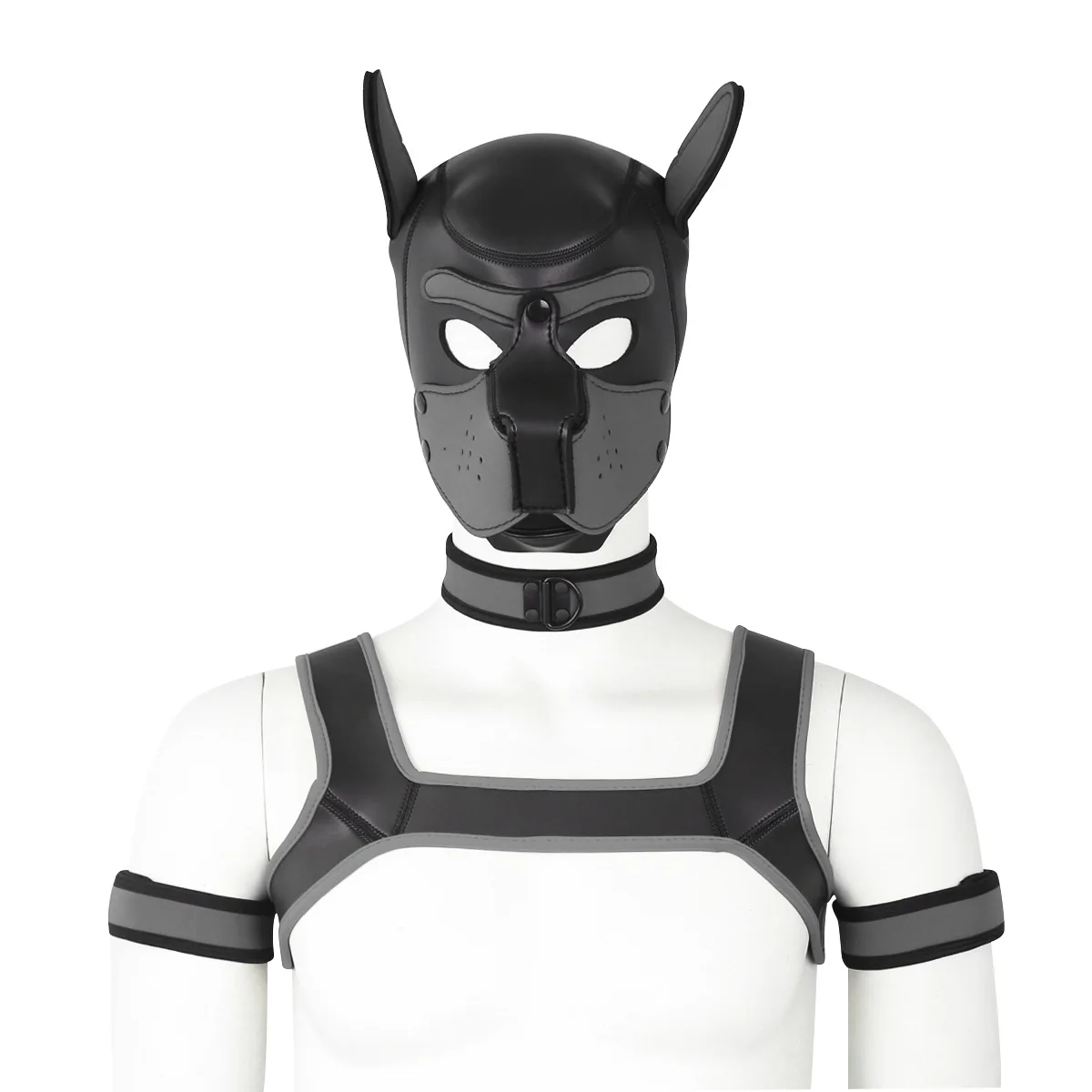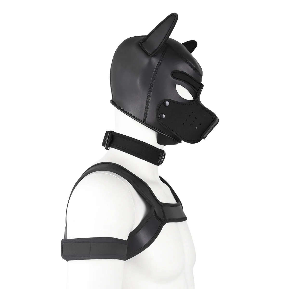 Маска-капюшон для собак, пикантная мягкая латексная резиновая открывающаяся, с повязкой на руку и ошейником, для ролевых игр, шлем для взрослых, для косплея