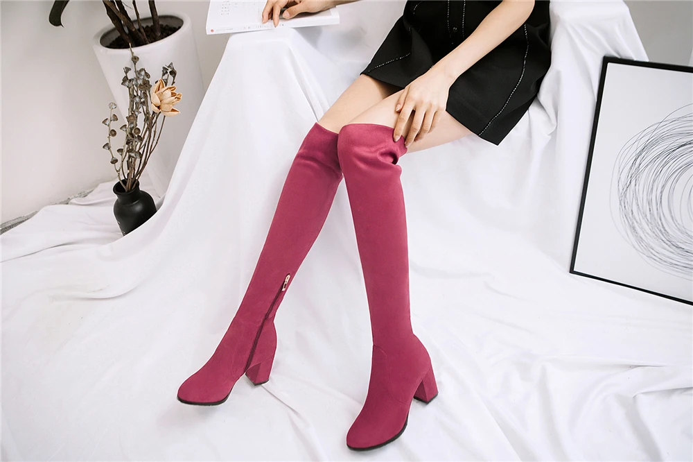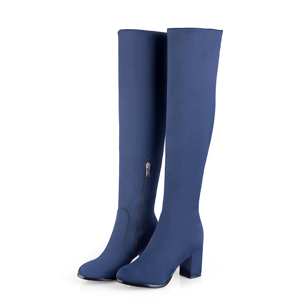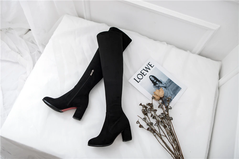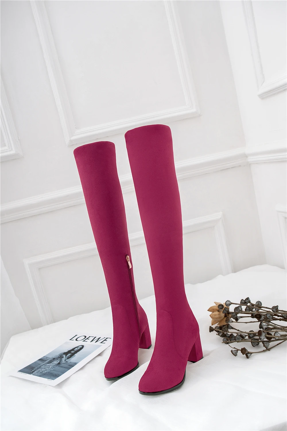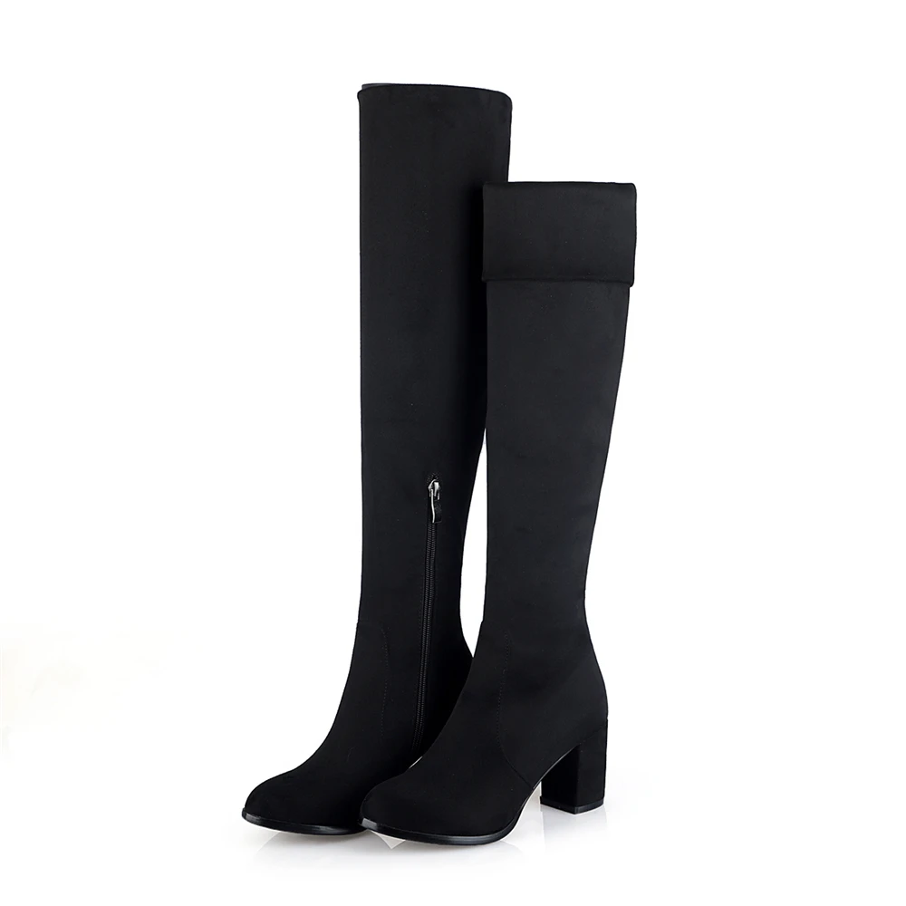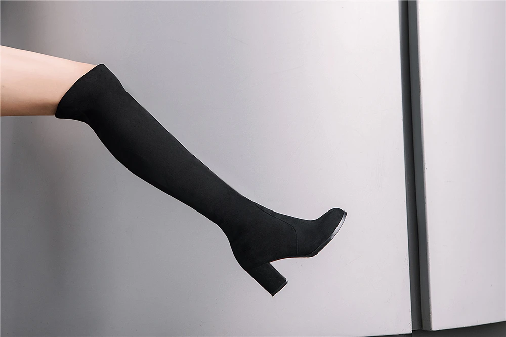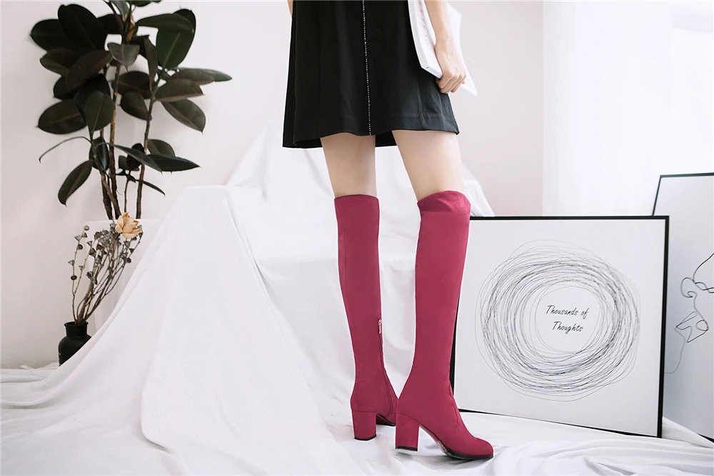 2021 г. Осенне-зимние новые Замшевые Сапоги выше колена эластичные женские сапоги на молнии с круглым носком Высокие женские сапоги 32, 33