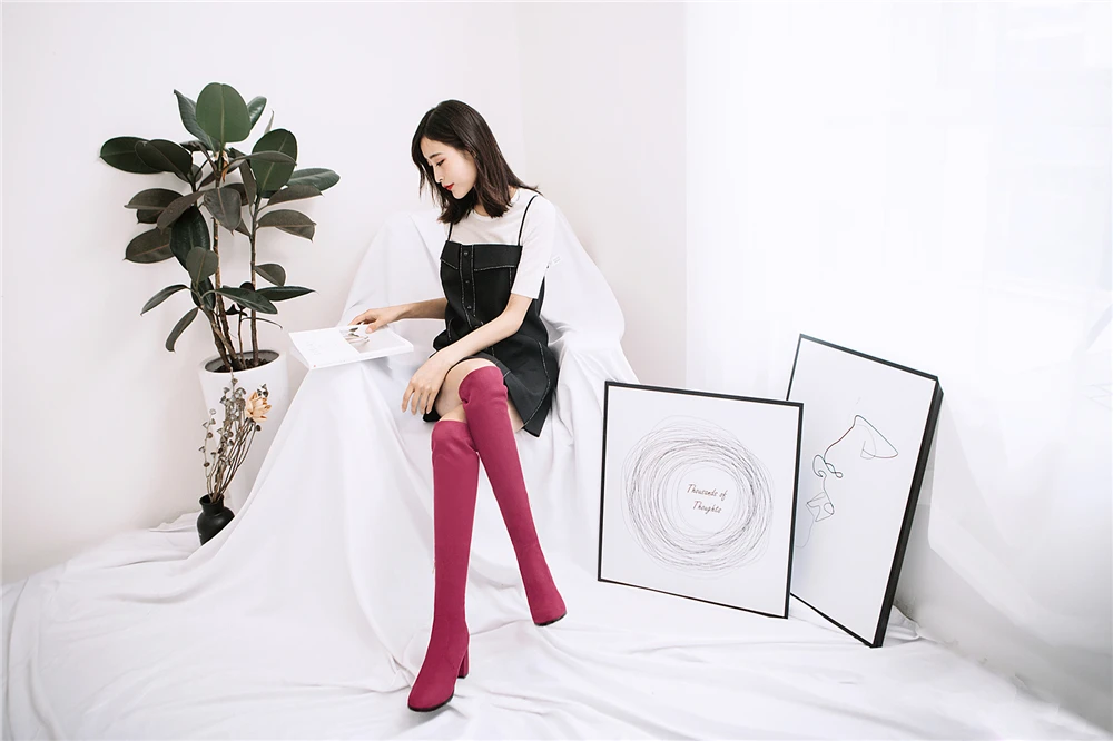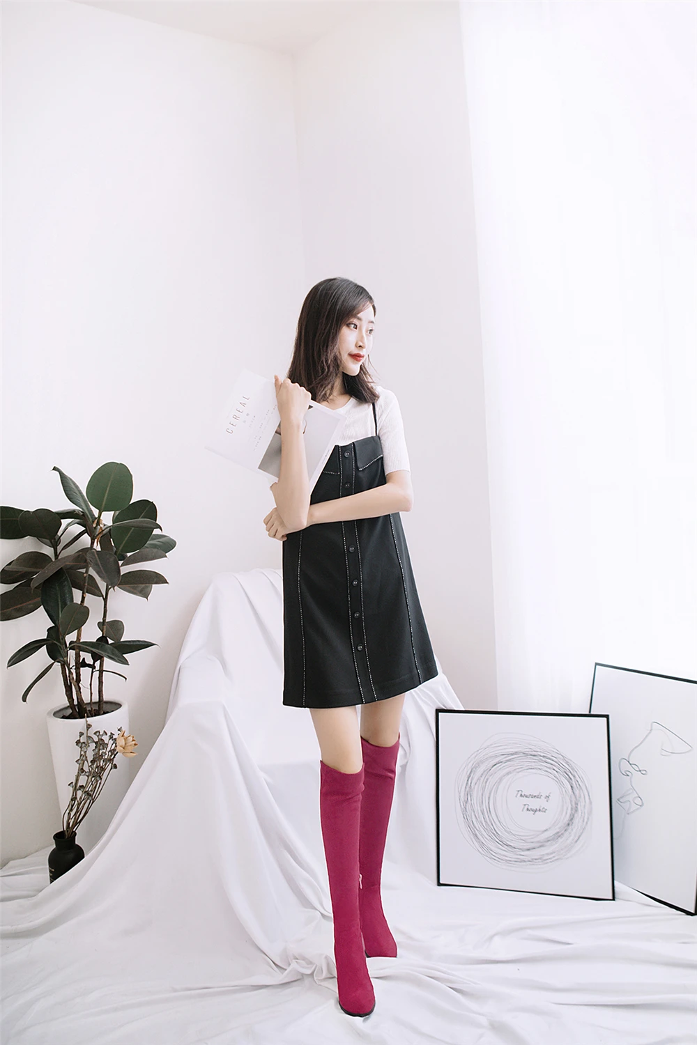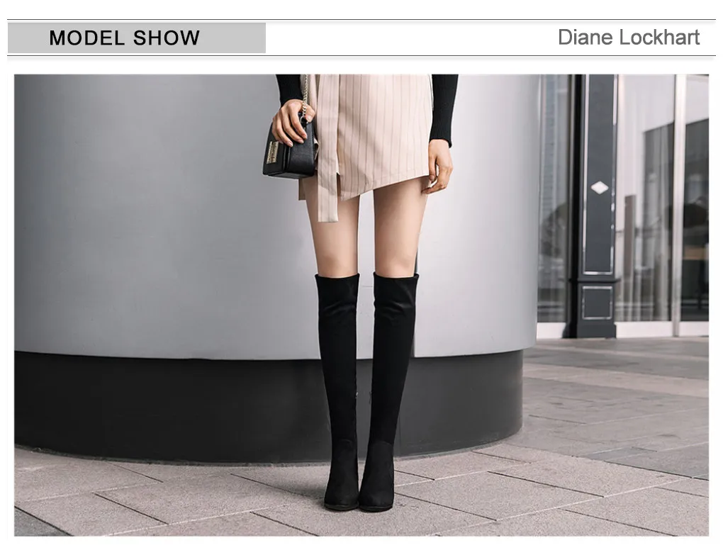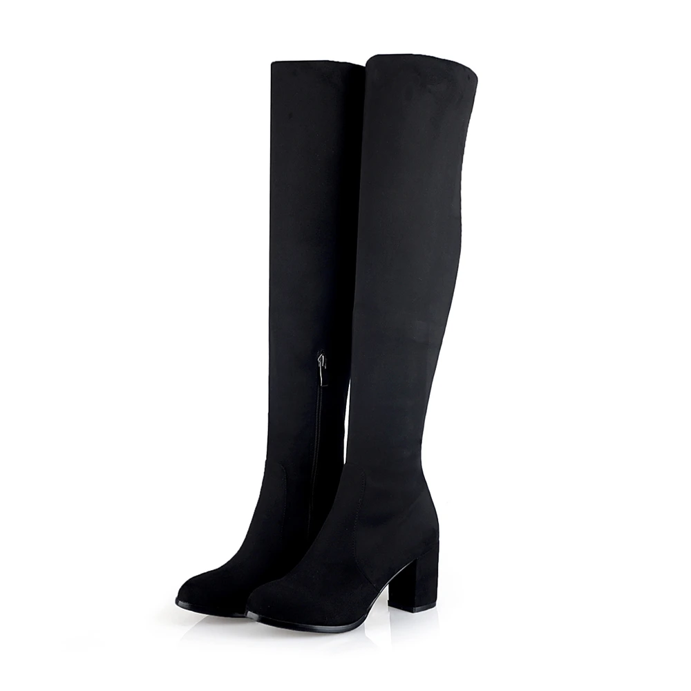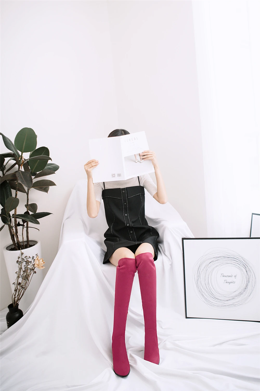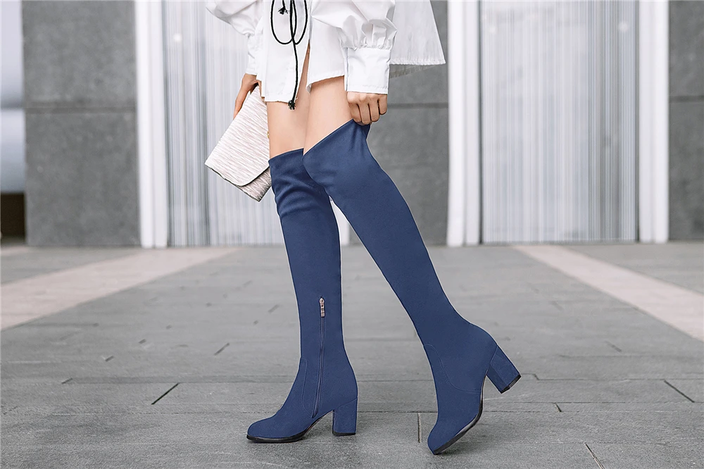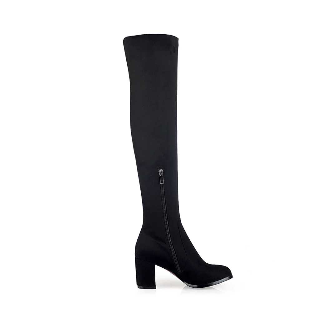 2021 г. Осенне-зимние новые Замшевые Сапоги выше колена эластичные женские сапоги на молнии с круглым носком Высокие женские сапоги 32, 33