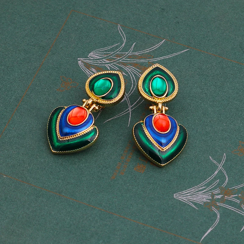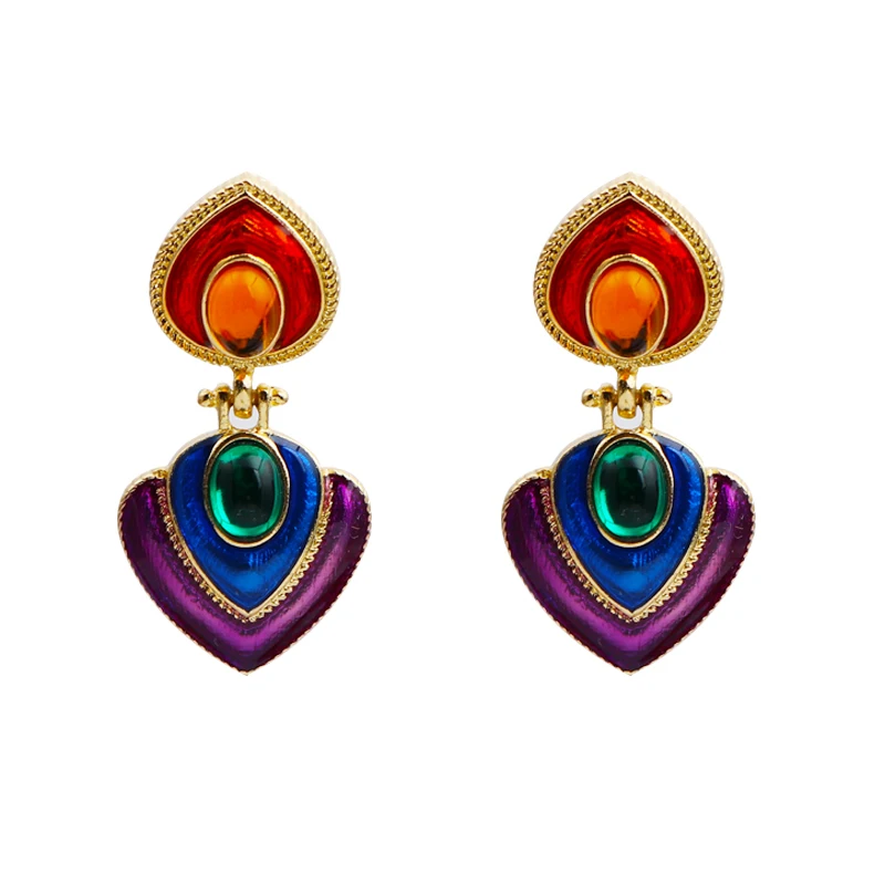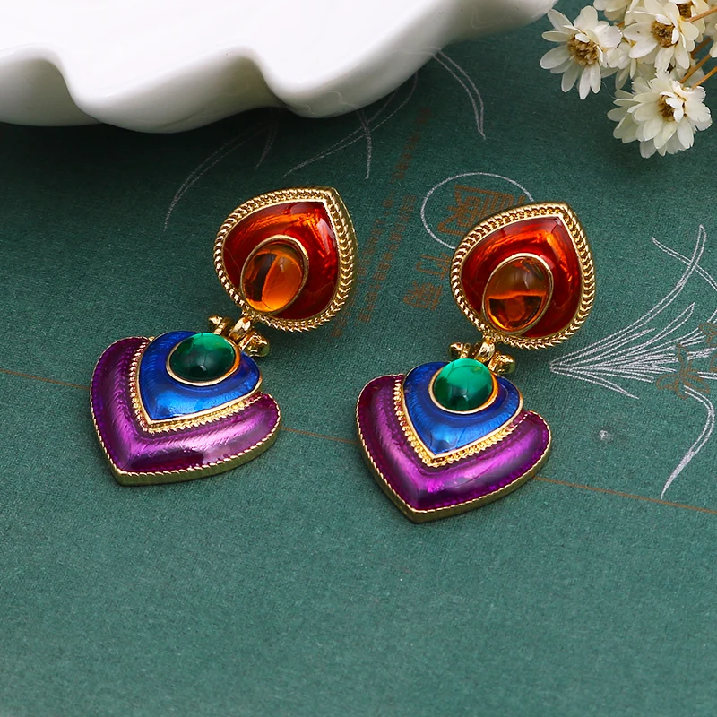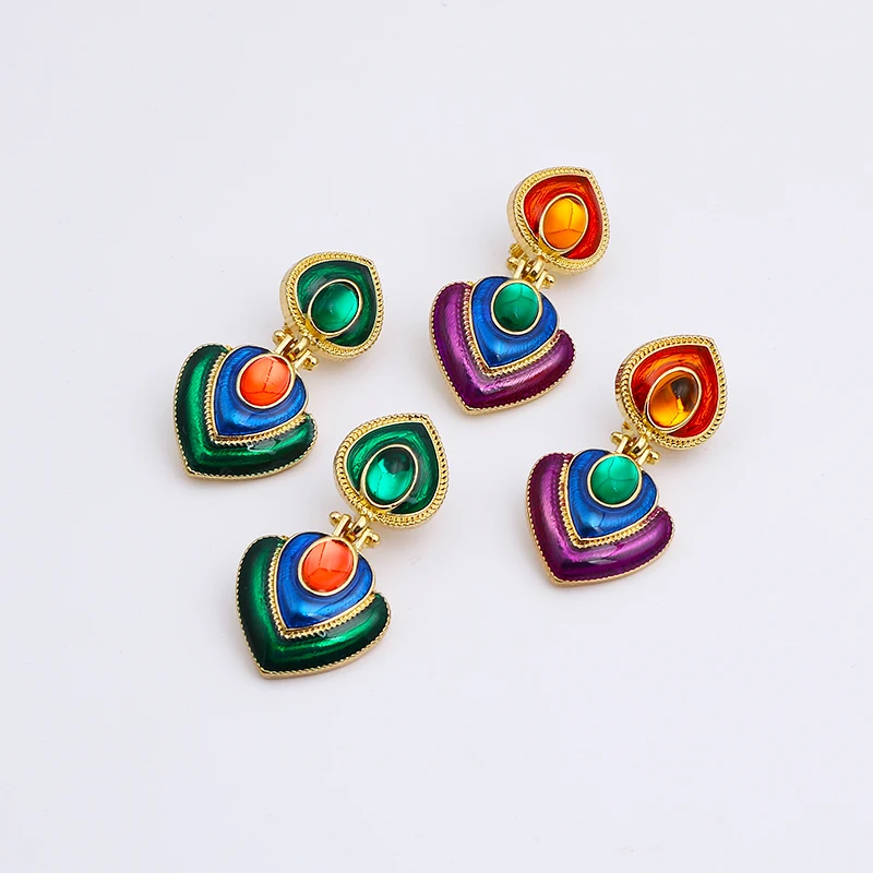 Женские клипсы-сердечки ZA, в стиле бохо, с разноцветными кристаллами, из смолы, без пирсинга, массивные ювелирные изделия