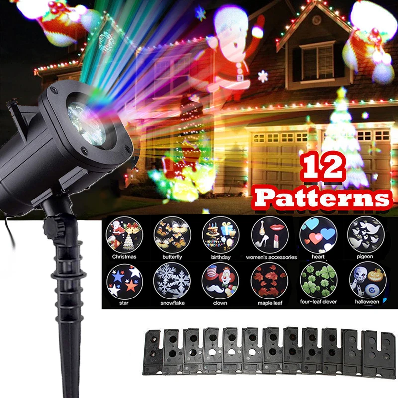 Уличный лазерный прожектор с 12 узорами, светодиодный сценический прожектор с изображением неба и звезд, освещение для рождества, сада, Рождественское украшение