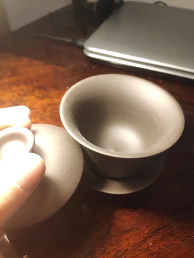 Пришло очень хорошо упаковано. Чашка глиняная и шероховатая. Спасибо