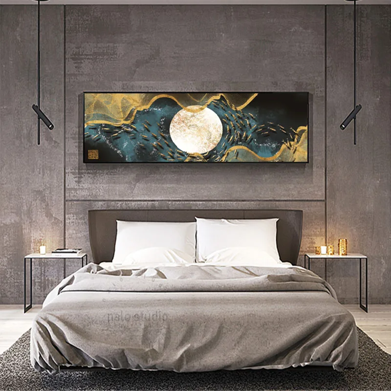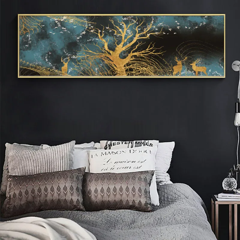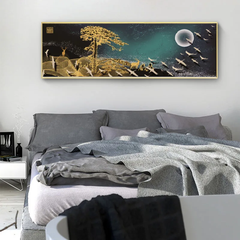 Большой Настенный художественный холст с принтами китайская горная Луна Ночная Золотая елка птицы живопись зал Декор для Гостиной Холст художественный настенный плакат