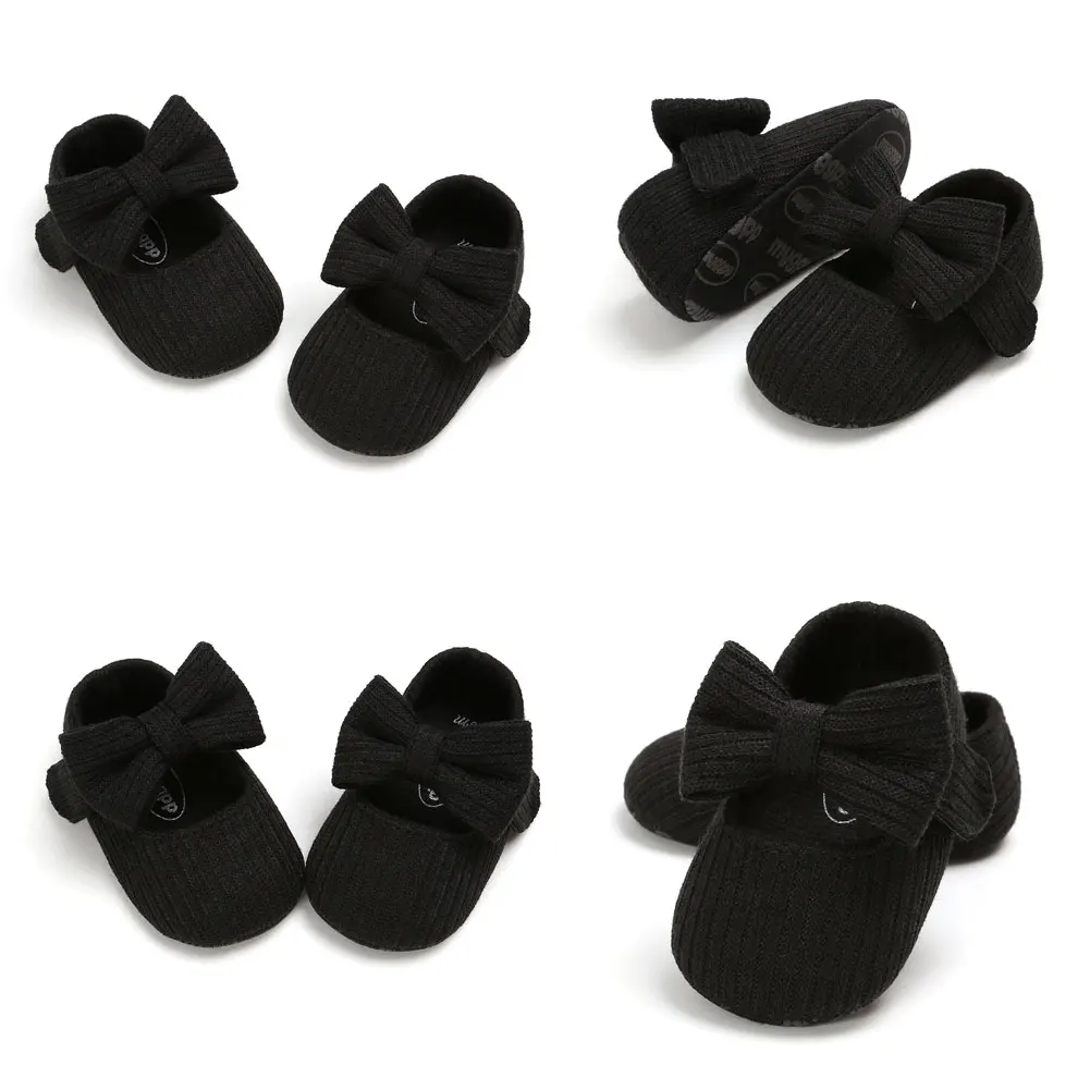 Милые модные туфли для маленьких девочек, вязаные хлопковые Мокасины с бантом для новорожденных, принцесс, нескользящая обувь на мягкой подошве, обувь для первых шагов