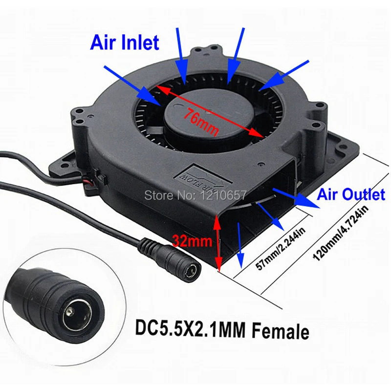 ЖенскийDC Разъем 5,5x2,1 мм 12 В 12 см 120 мм 120x120x32мм 12032 бесщеточный центробежный вентилятор охлаждения