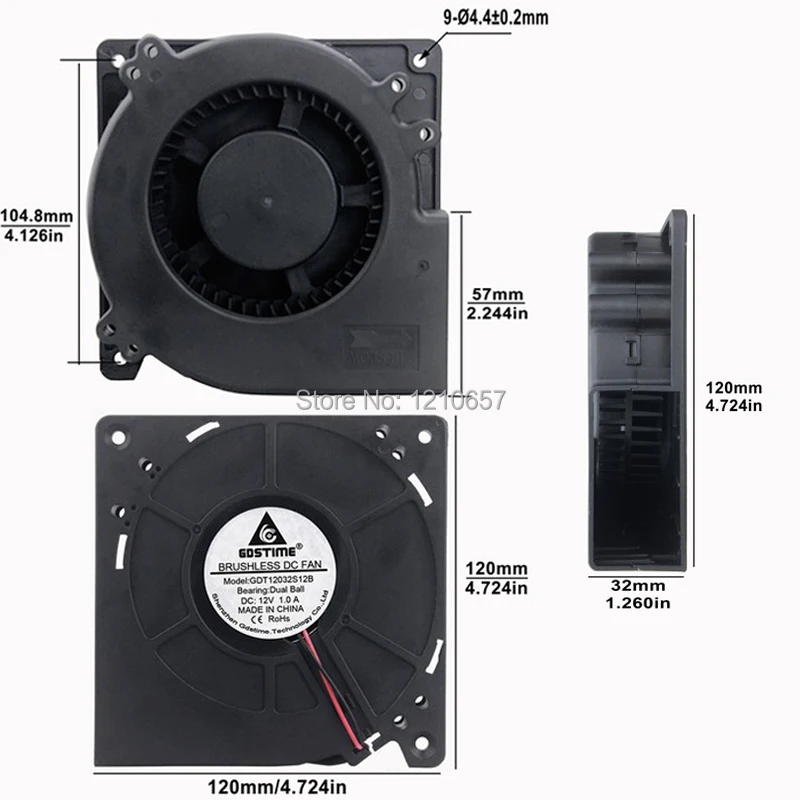 2 шт. Gdstime DC 12 В 120 мм 120x120x32мм Вентилятор 120x32 мм 12 с...