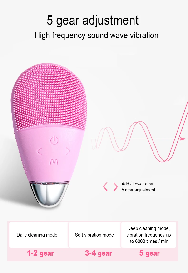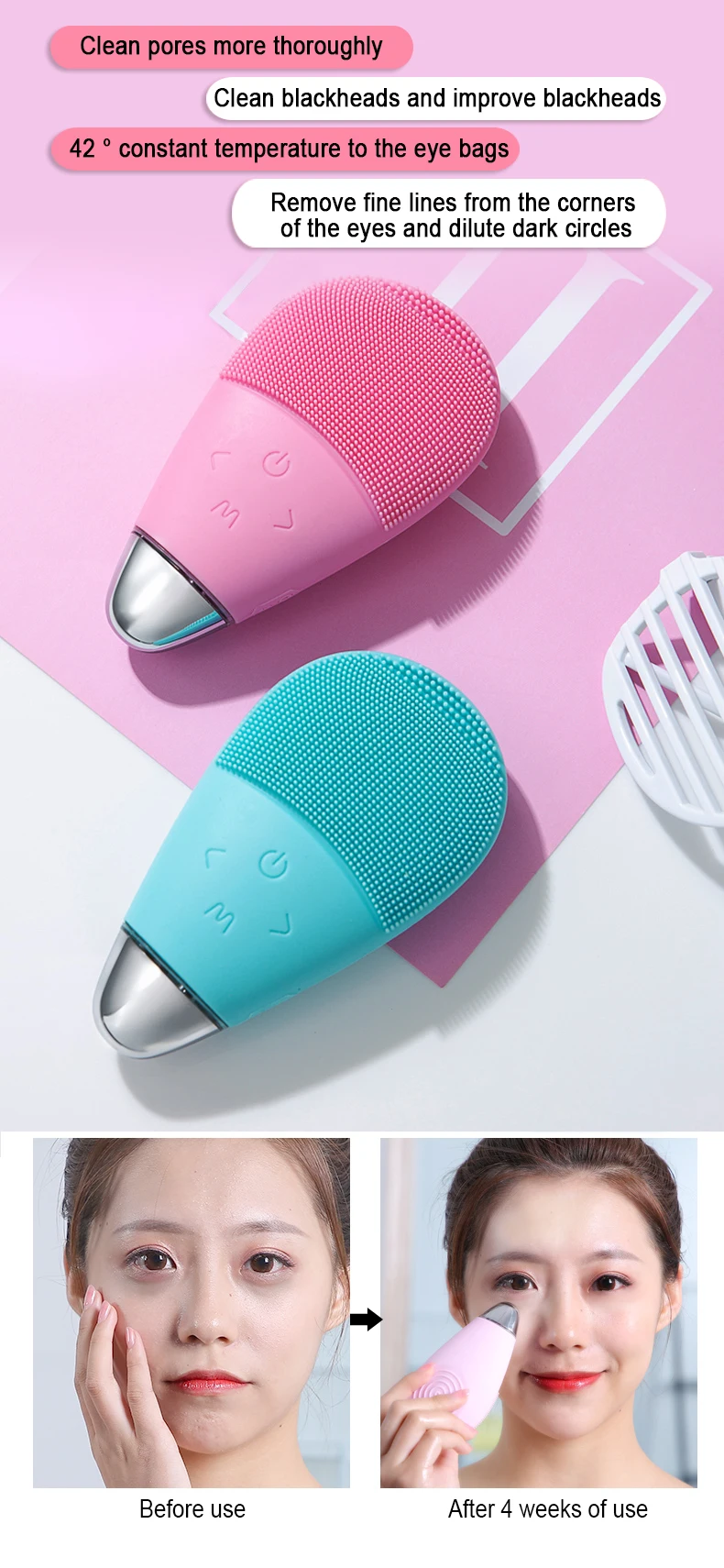 Электрическая силиконовая щетка для очищения лица, ультразвуковой вибратор для массажа лица, Очищение лица от темных кругов и мешков для глаз, уход за красотой