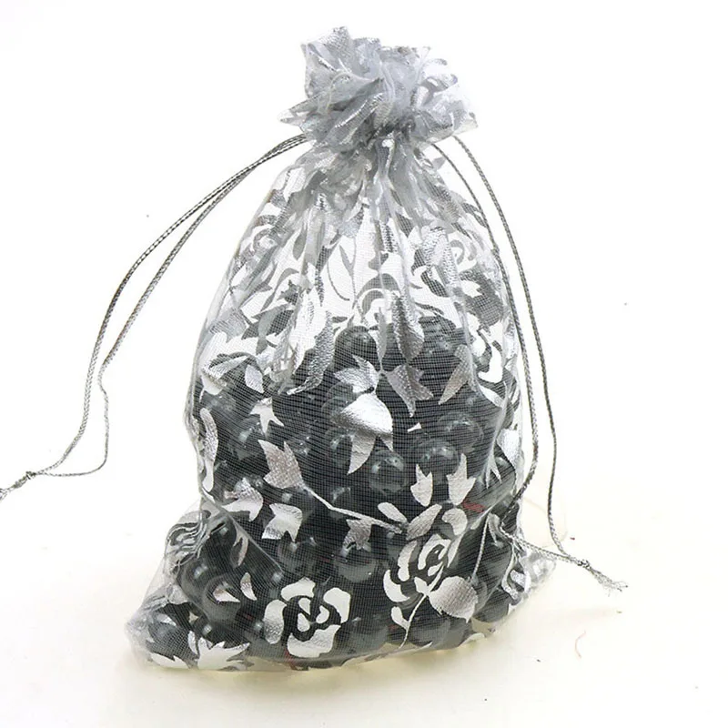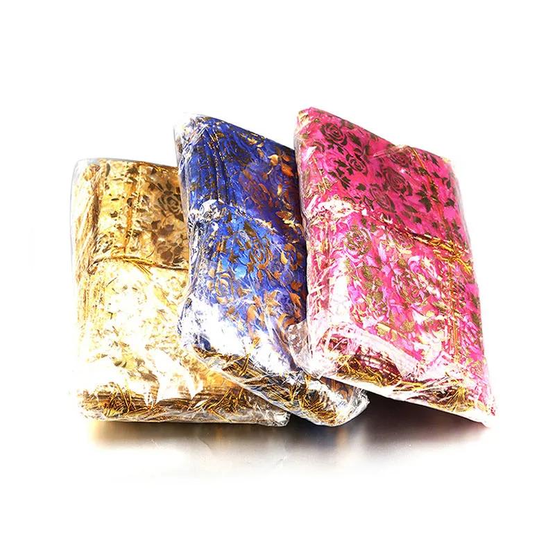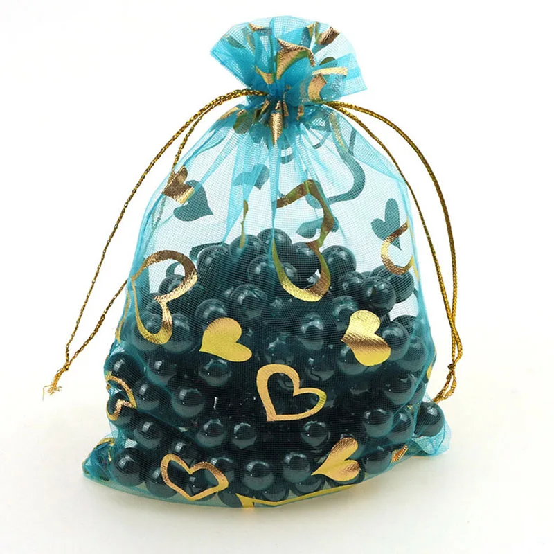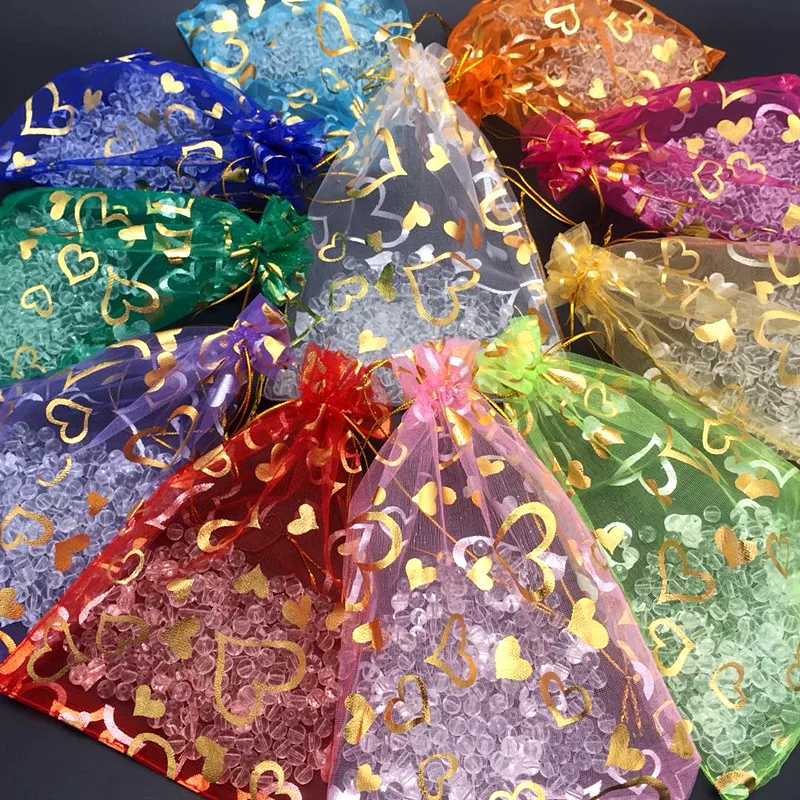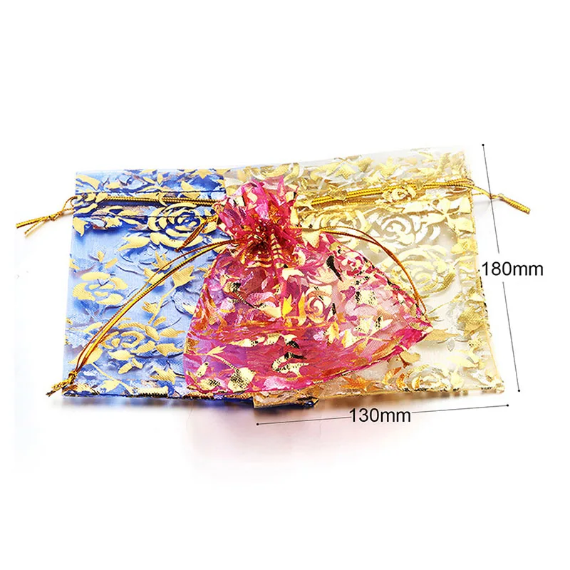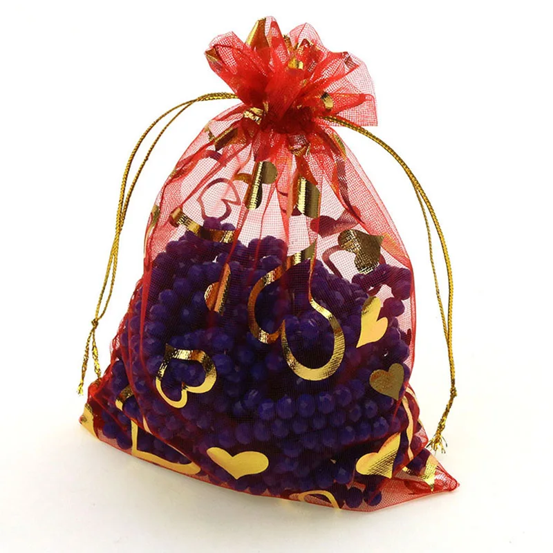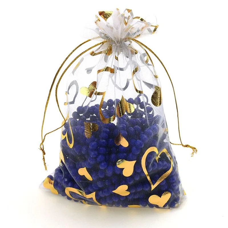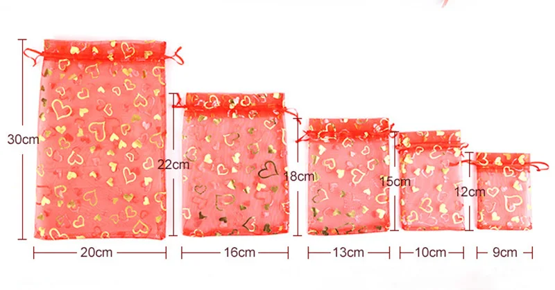 100 шт./лот 7x9 см 9x12 см 11x16 см 13x18 см золотистый цвет Любовь Сердце Роза органза сумка свадебная вуаль подарок Рождественские Сумки Упаковка ювелирных изделий