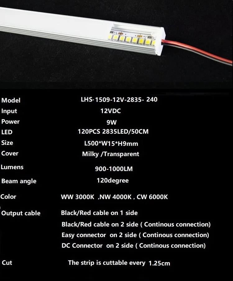 Светодиодная лента для шкафа 12 В постоянного тока, 50 см, 20 дюймов, 2 Вт, 6 Вт, 9 Вт, плосветильник полоска с соединением на 90180 градусов, алюминиевая жесткая монтируемая поверхность