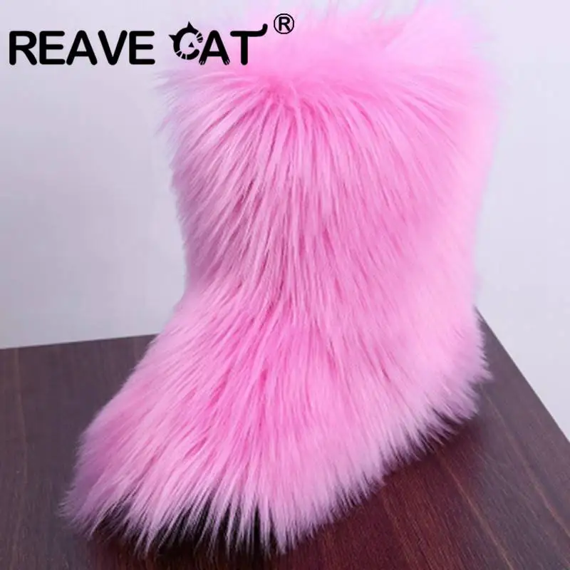 Женские ботинки с мехом REAVE CAT, зимние теплые ботинки из натурального страусиного меха на плоской подошве, лыжные ботинки с плюшевой подкладкой