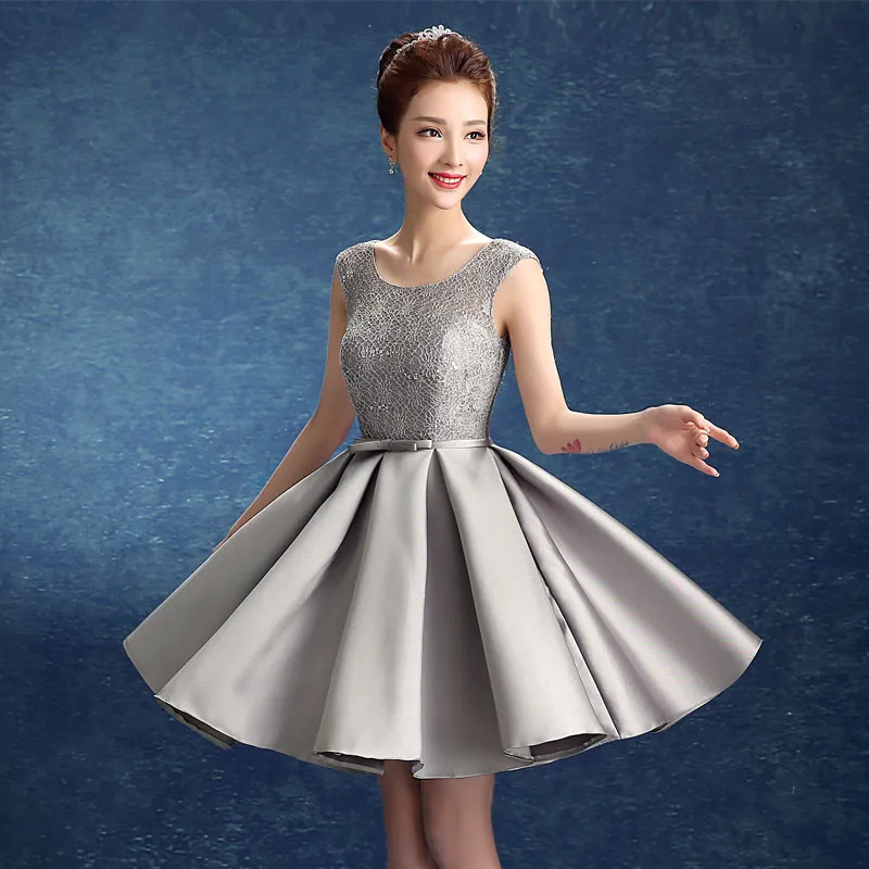Короткое вечернее платье, атласное кружевное винно-красное серое, ТРАПЕЦИЕВИДНОЕ, для невесты, официальное платье, Встреча выпускниковкорпоративы выпускной