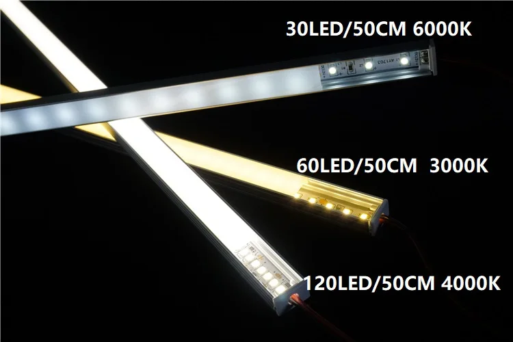 Чем больше светодиодов на метр, тем ярче планка30 светодиодов/50 см диод легко виден60 светодиодов/50 см диод все еще виден, но не ясен120 светодиодов/50 см диод незаметенЧем больше светодиодов, тем больше тепловое излучение, для близкого пространства, мы предлагаем 30/60 светодиодов на лампу