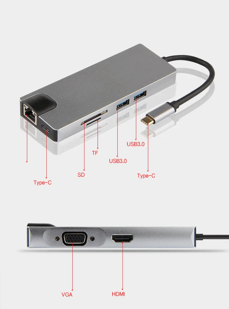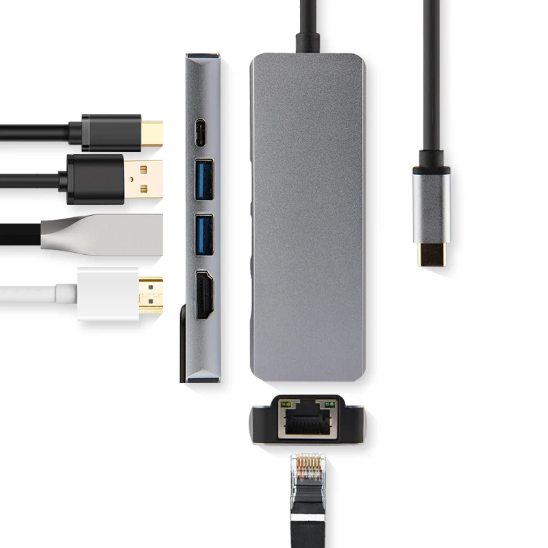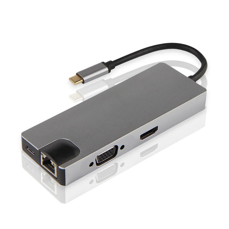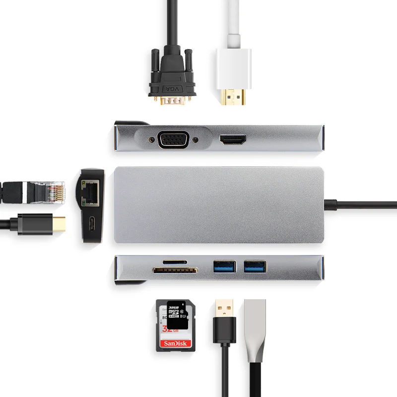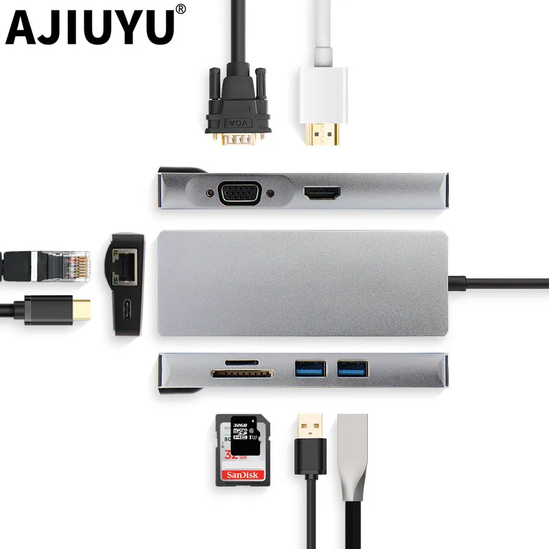 AJIUYU USB C Hub Type-C адаптер док-станция Thunderbolt 3 мульти-порт HDMI VGA USB RJ45 гигабитный Ethernet сплиттер для MateBook Pro Air