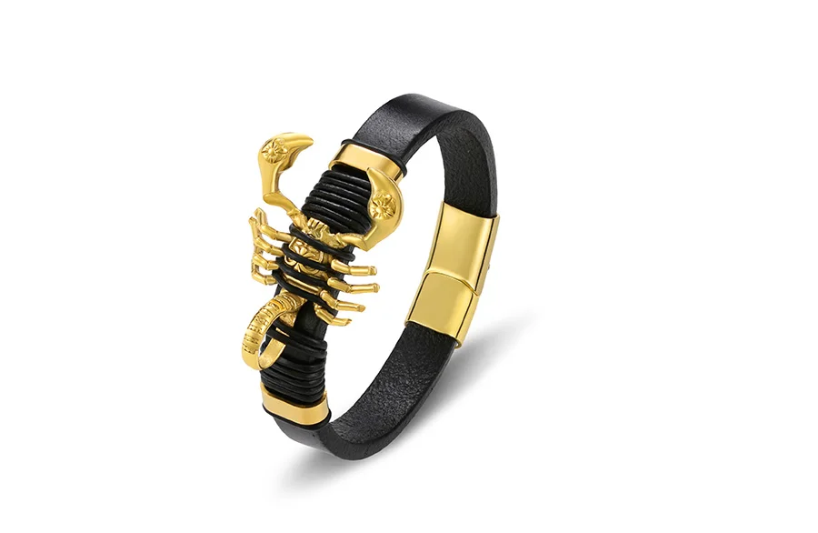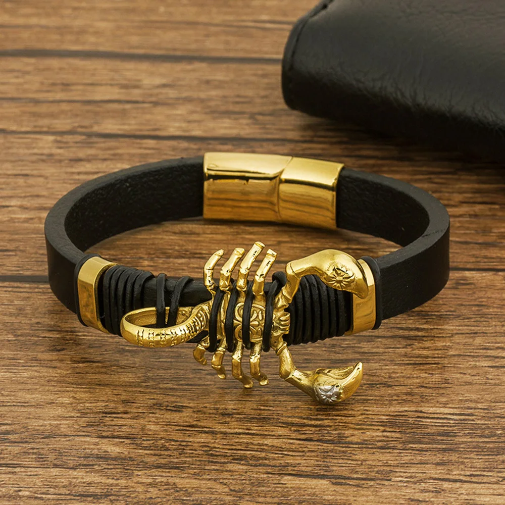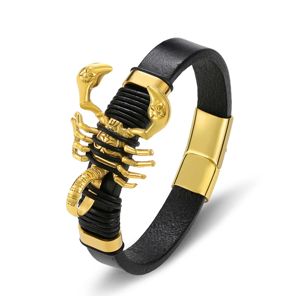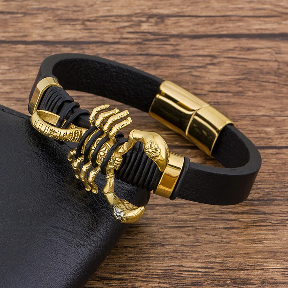 2019 Модный повседневный очаровательный кожаный браслет, мужские ювелирные изделия, нержавеющая сталь, манетик, оптовая продажа, аксессуары, панк-рок, золото