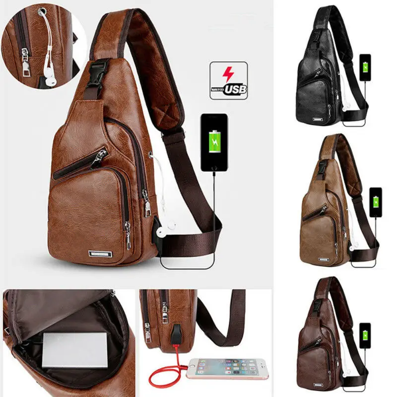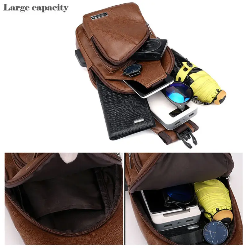 Лидер продаж, портативная Мужская нагрудная сумка из искусственной кожи, спортивная сумка-мессенджер через плечо с usb-зарядкой и карманами, спортивные дорожные сумки, горячая распродажа