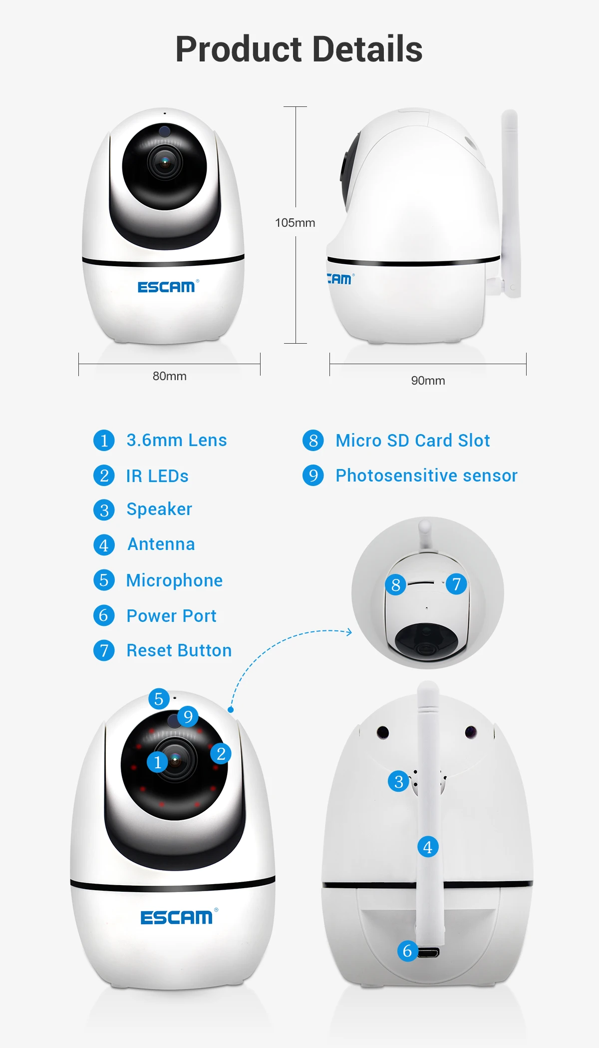 Новинка, беспроводная PTZ-камера ESCAM PVR008 с функцией автослежен...