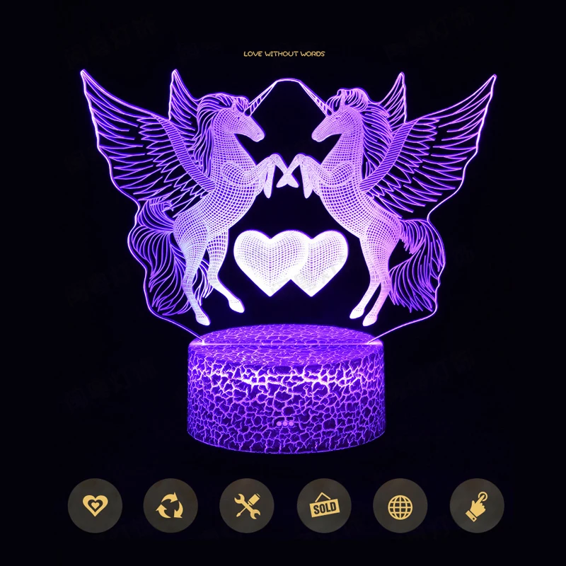 Ночники светодиодные, новинка, 3D лампа, милая игрушка, подарок, 7 цветов, абстрактная графика, мультфильм, атмосферная лампа для детской комнаты