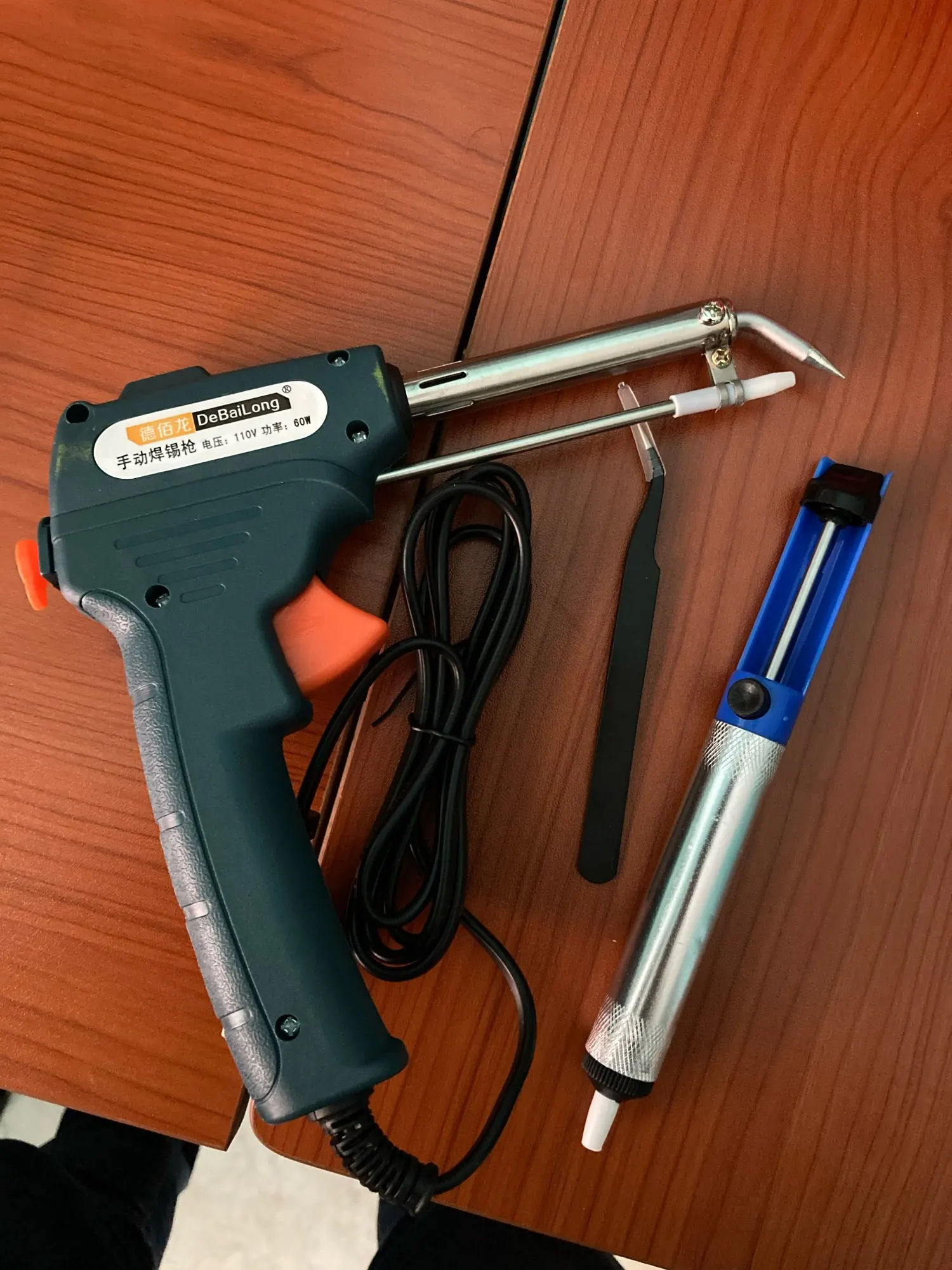 Электрический паяльник, 60 Вт, автоматическая подача оловянного пистолета, паяльная станция, паяльник, пинцет с наконечником, сварочный провод, Ремонтный Инструмент 110 в 2