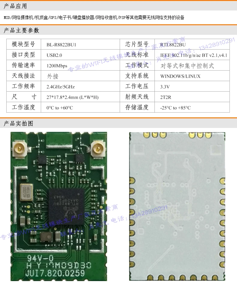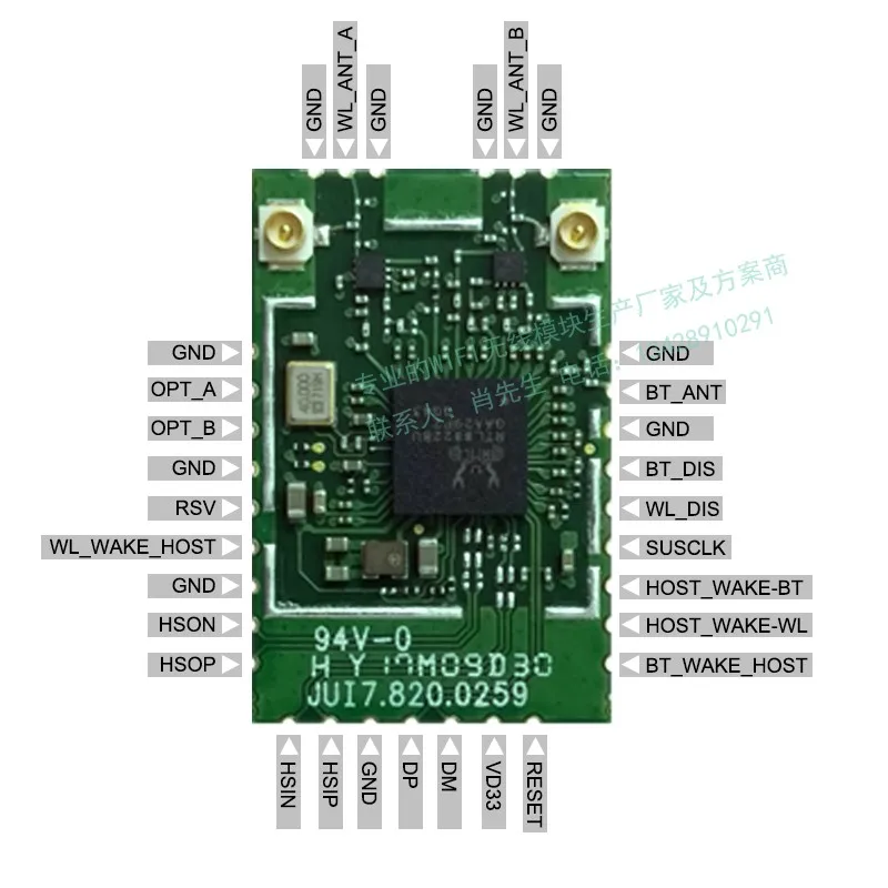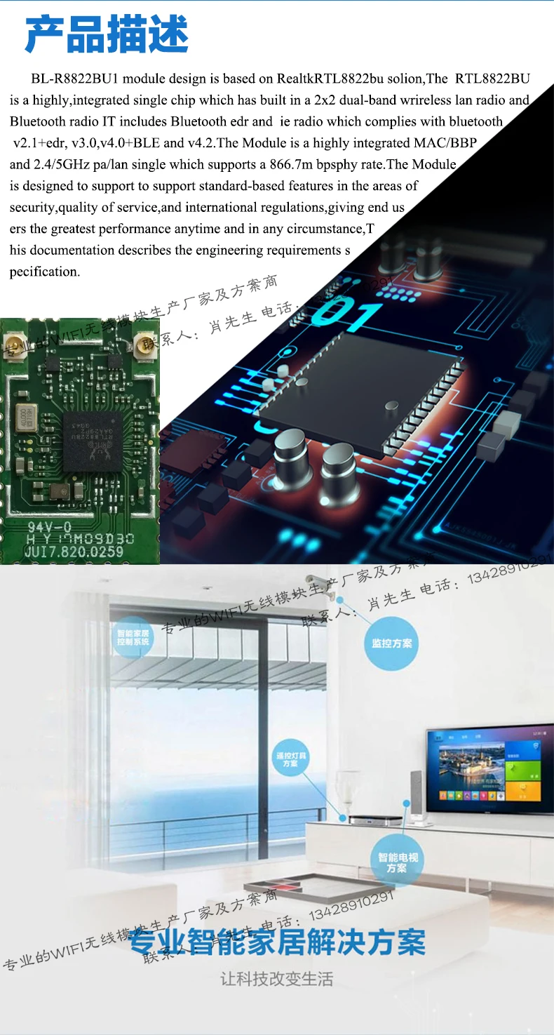 Смарт-ТВ RTL8822BU, дисплей, USB интерфейс, 11ac, двухдиапазонный, стандартный Bluetooth, Wi-Fi, два в одном модуле
