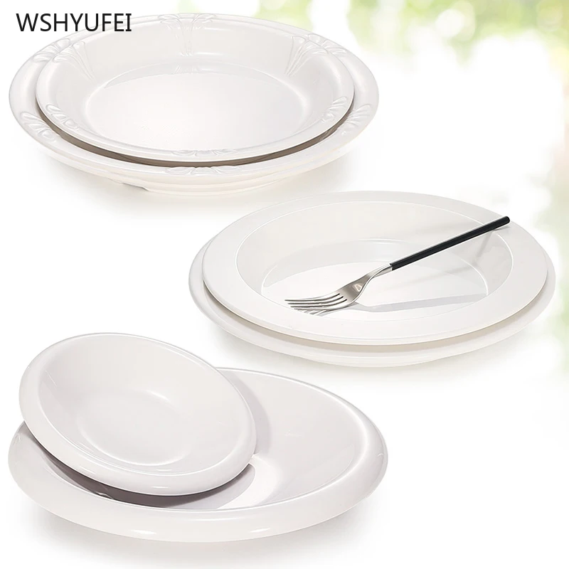 Креативная белая тарелка из меламина, не ломается, круглые большие фрукты, десерт для быстрого питания, гостиница, ресторан, кухня, товары для дома