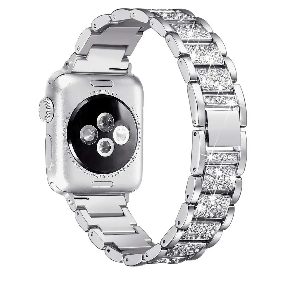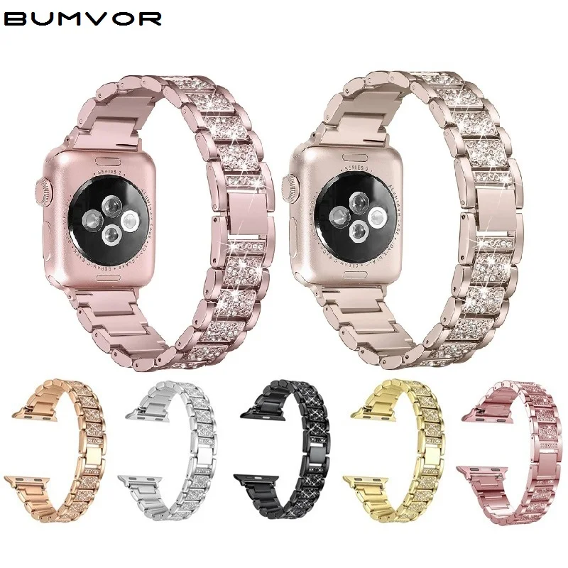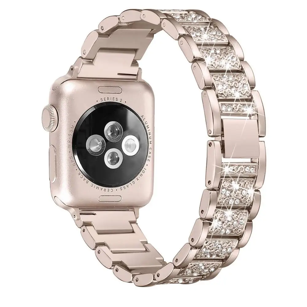 Ремешок для часов daimond для Apple Watch, браслет из нержавеющей стали цвета розового золота для iWatch Series 5 4 3 2 44 мм 42 мм, 38 мм 40 мм