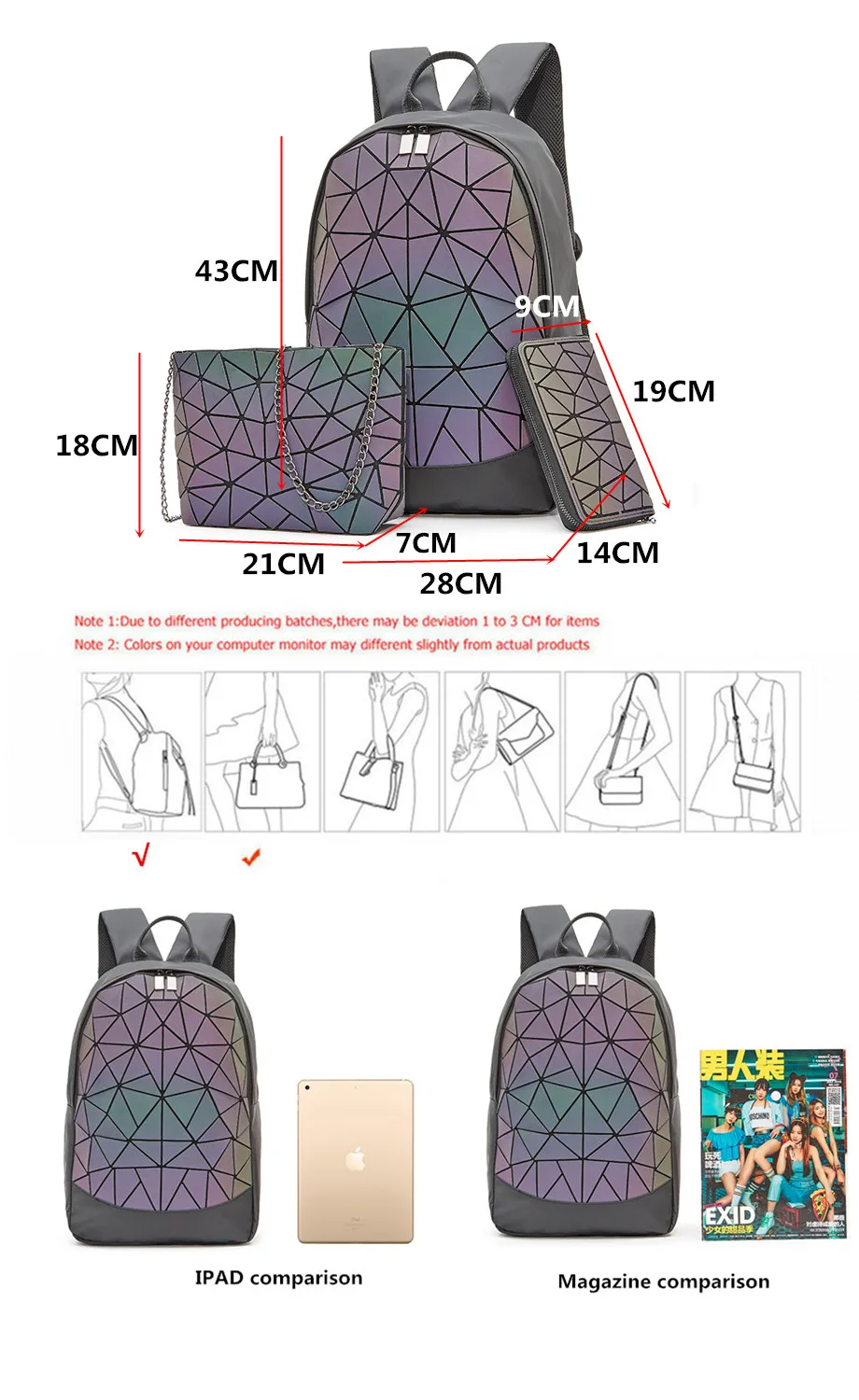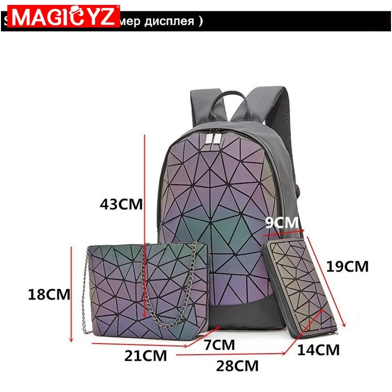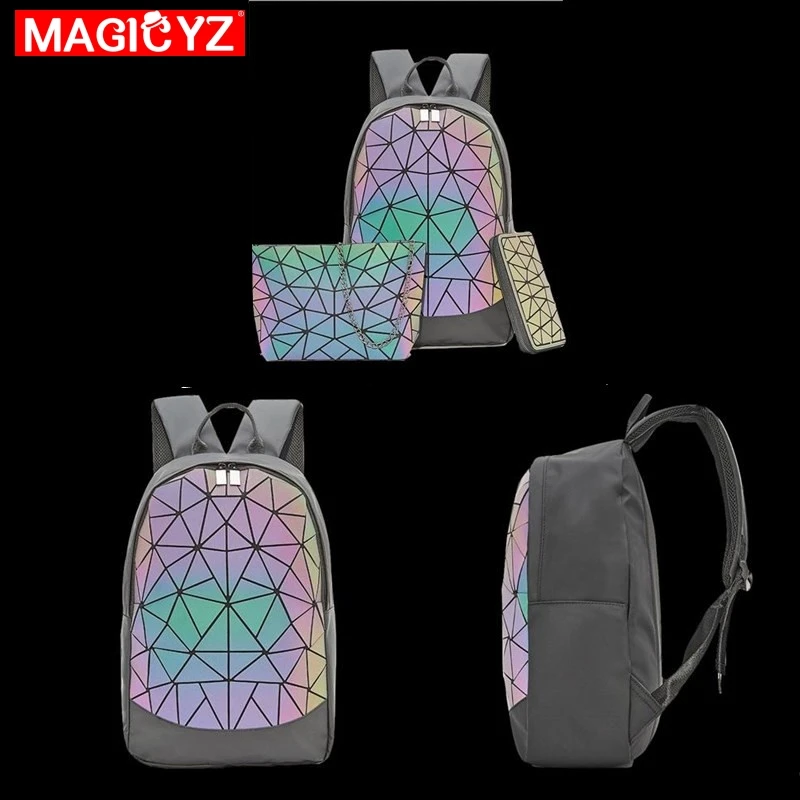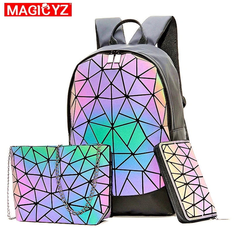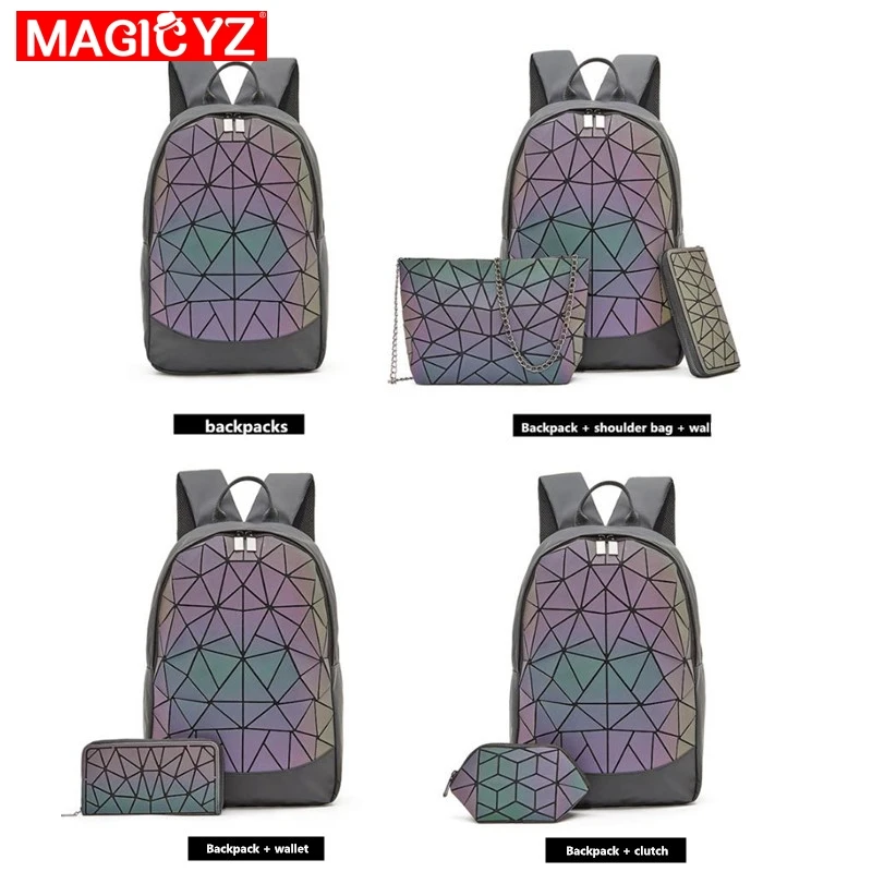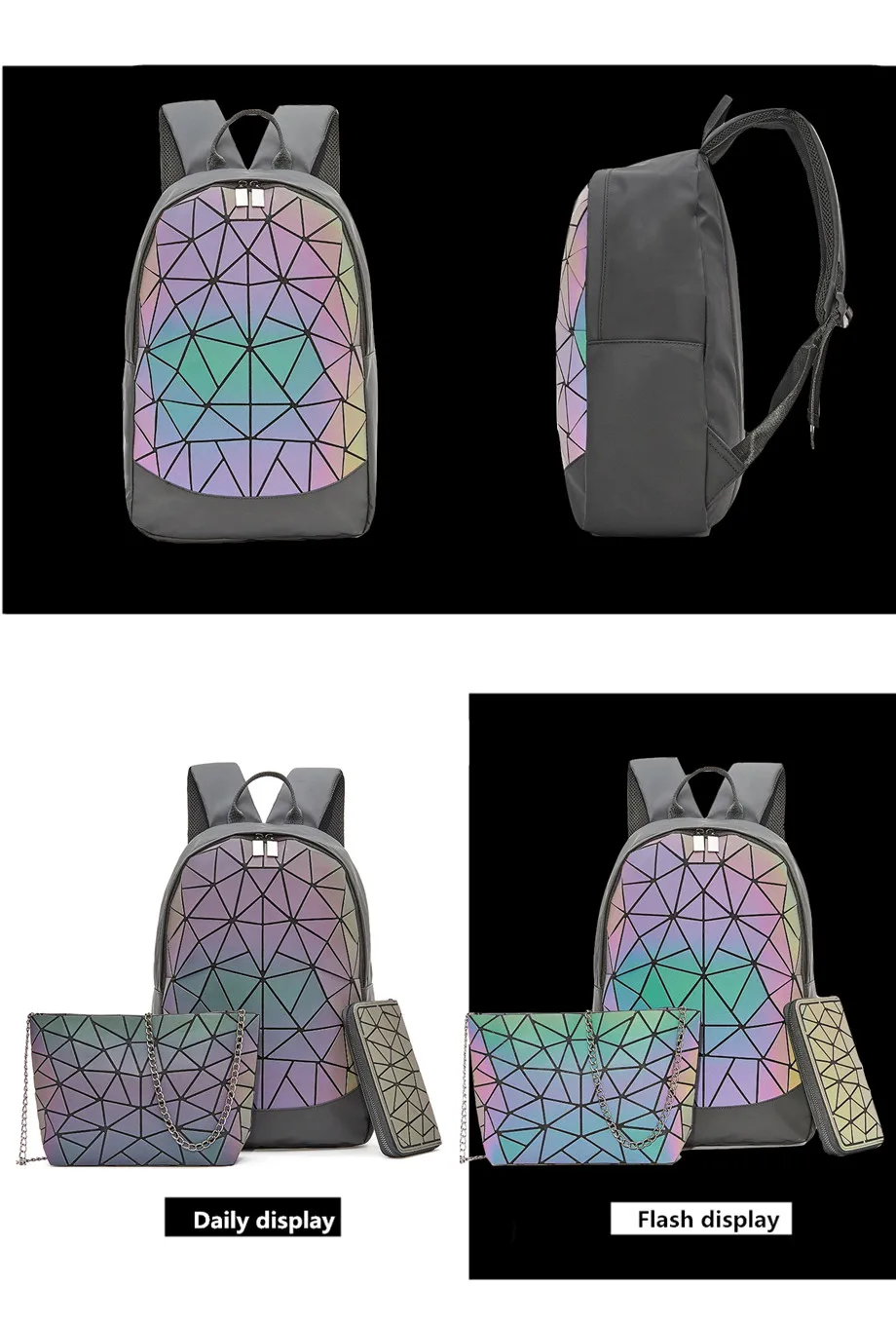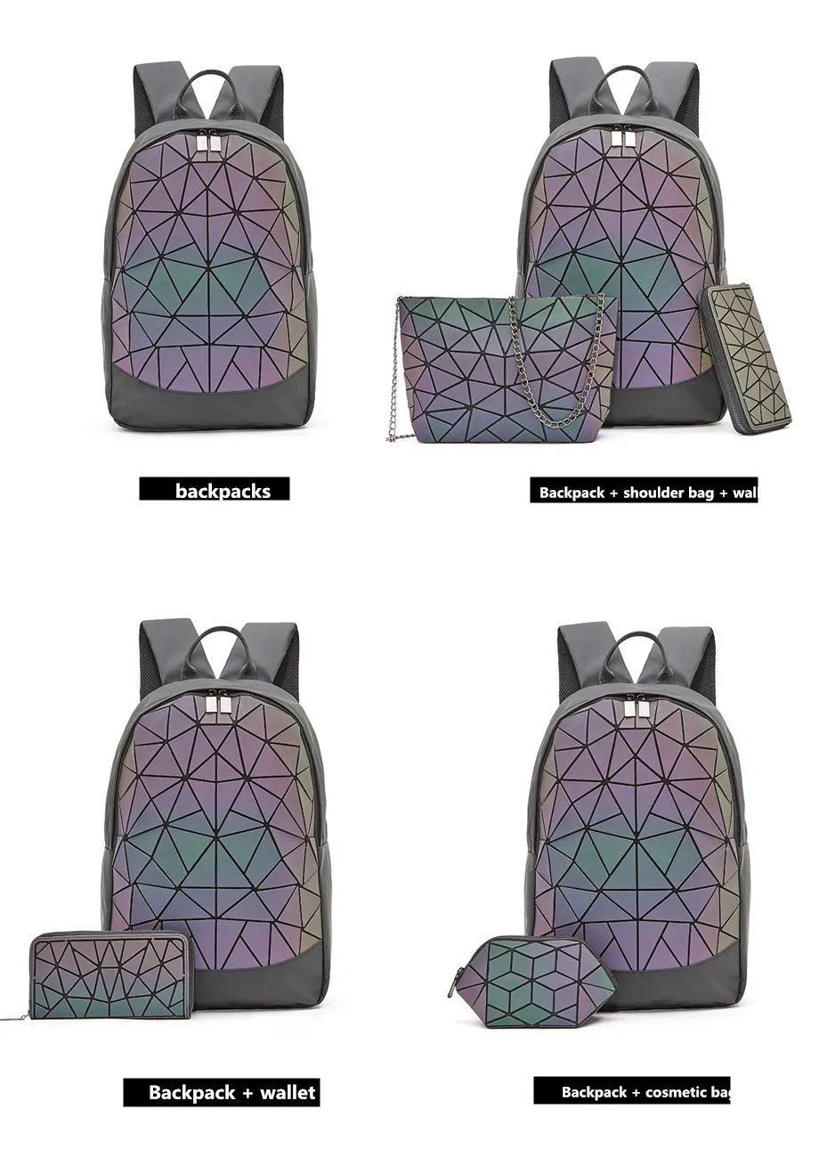 Большой комплект, рюкзак для женщин, Геометрическая светящаяся сумка на плечо для девочек-подростков, школьный рюкзак для женщин, универсальная дорожная сумка, Sac A Dos