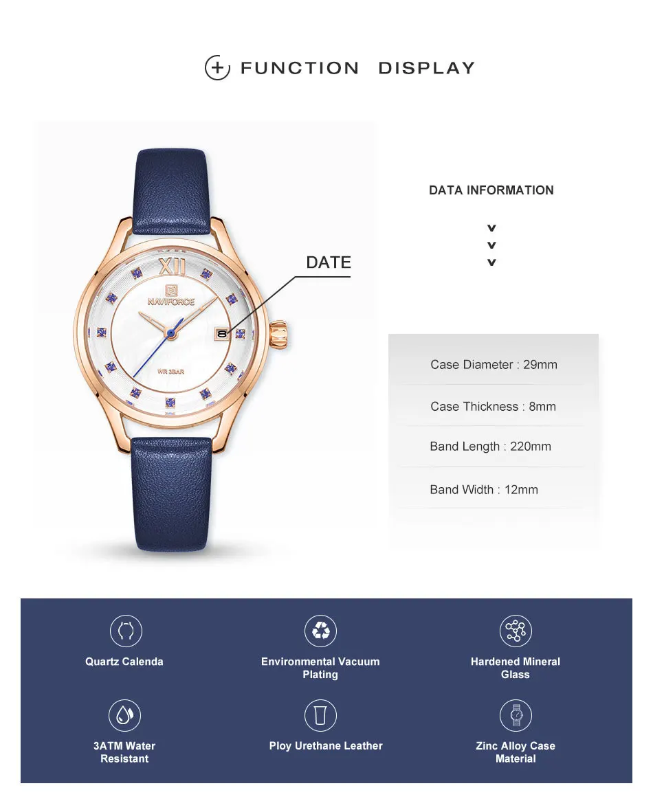 Часы наручные NAVIFORCE женские кварцевые, брендовые Роскошные модные водонепроницаемые простые для девушек