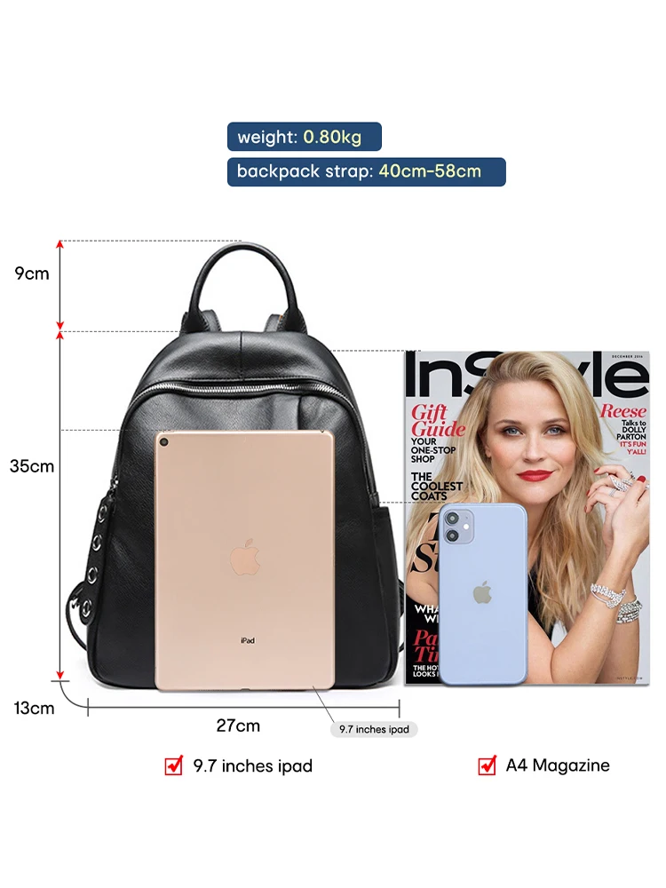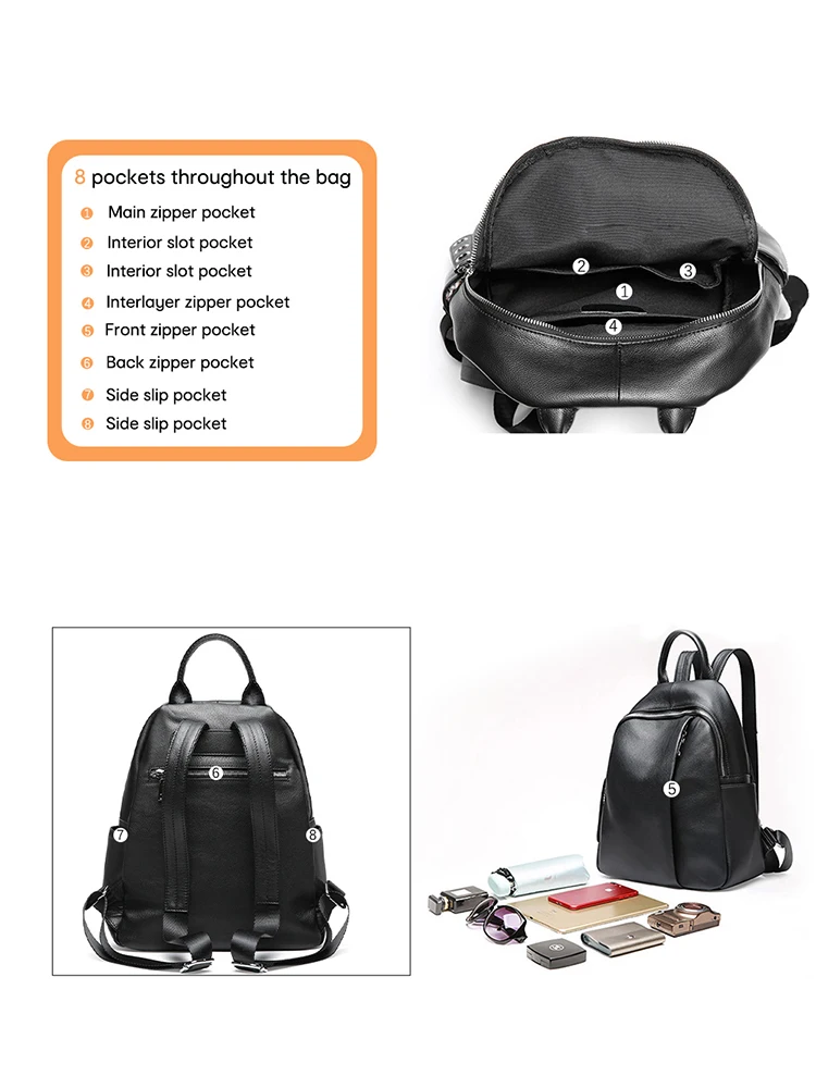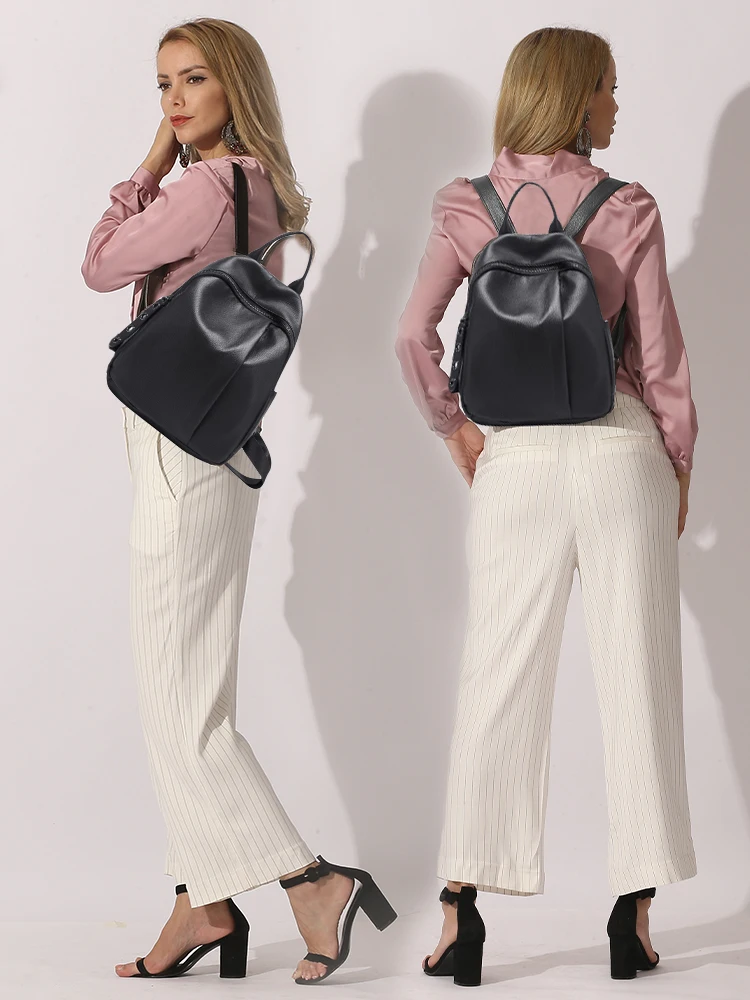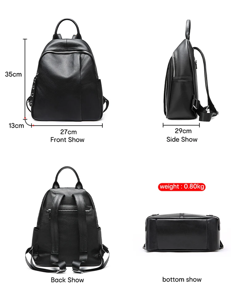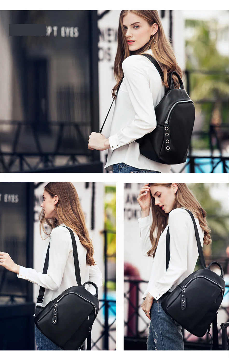 Женский рюкзак с защитой от кражи Zency, классическая черная школьная сумка из 100% натуральной кожи для девочек, Повседневная дорожная сумка, ранец