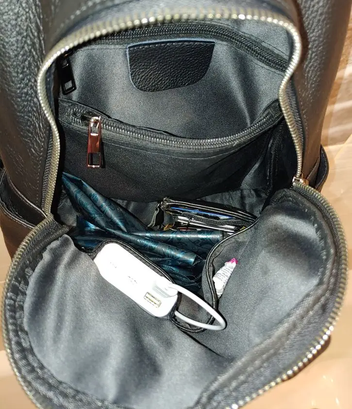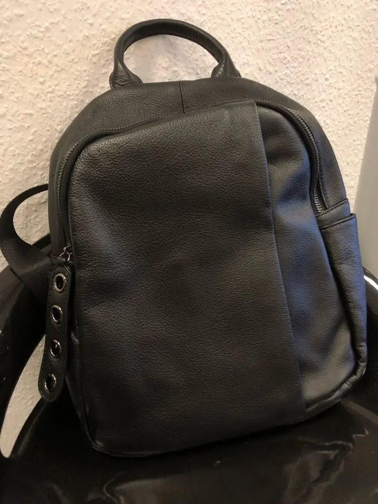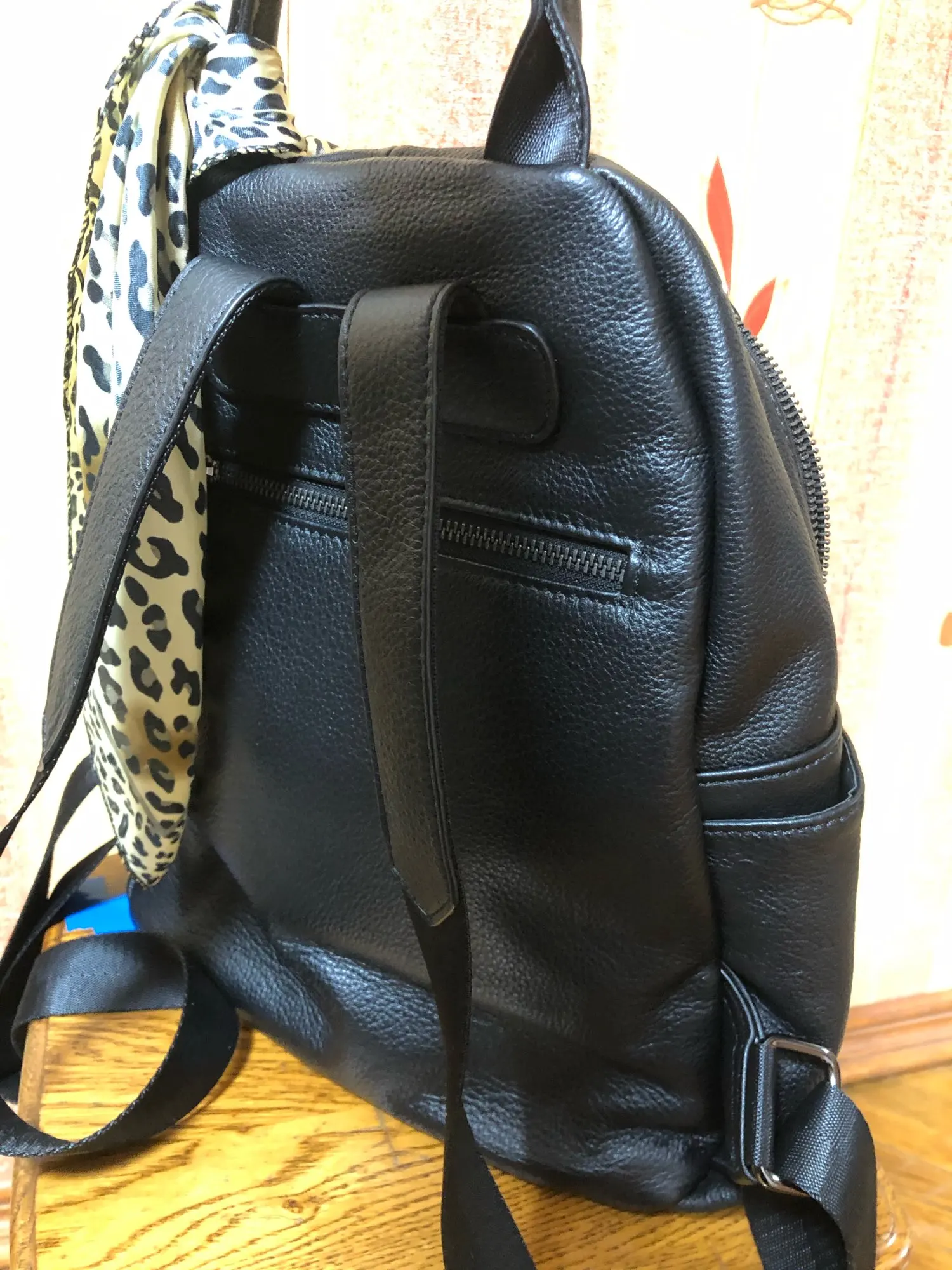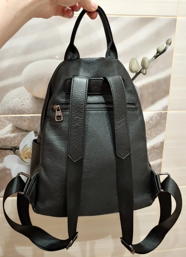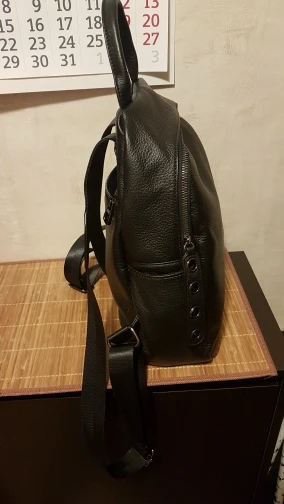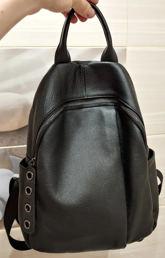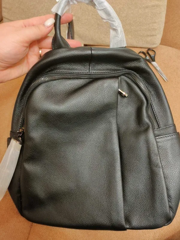 Рюкзачек очень понравился. Обажаю, когда много карманов, хорошие молнии и прошивка. На кожу похоже. Хотя я и не очень большой специалист. Не очень большой, именно, чтобы перемещаться по городу, взять что то важное в дорогу и иметь свободные руки. Достойно упакован. Никаких помятостей, царапин и заломов. Продавца рекомендую.
