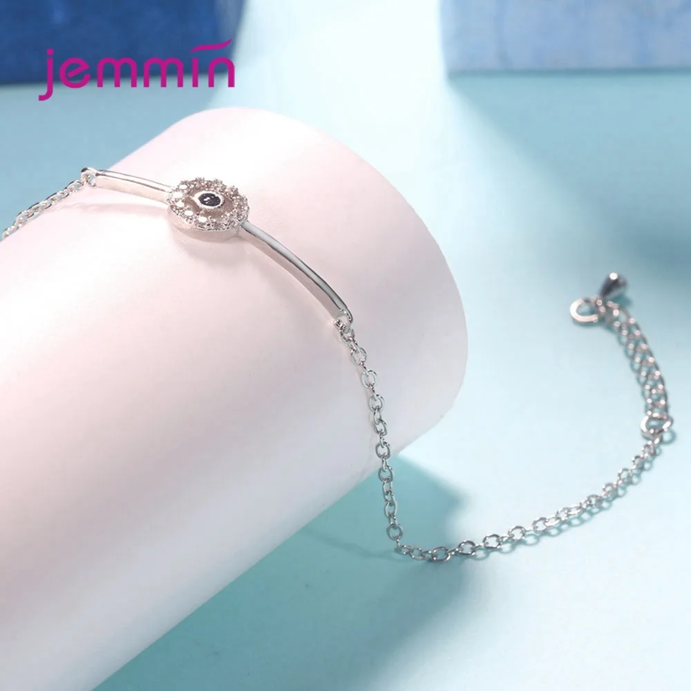 925 стерлингового серебра сглаза браслет с шармами в минималистском стиле для женщин и девочек прозрачный синий кубический циркон браслеты ювелирные изделия