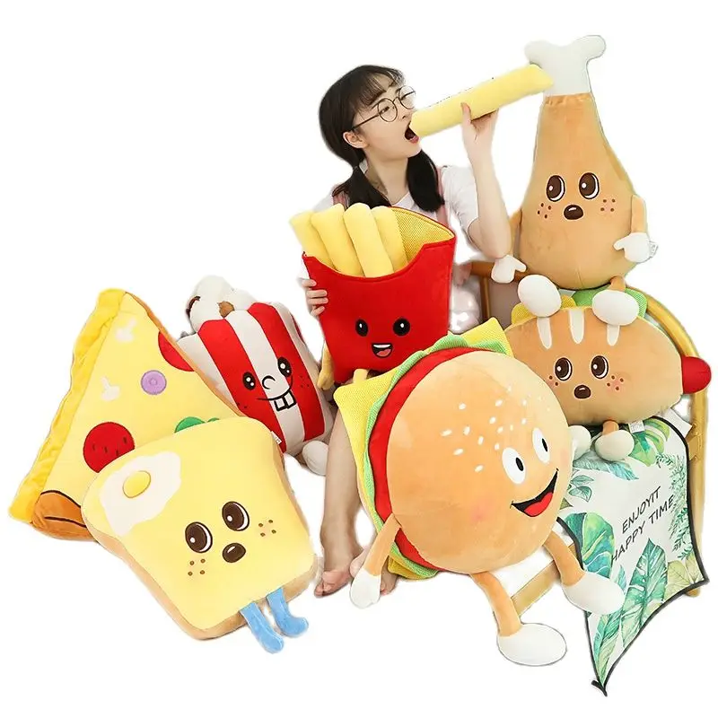 Креативная мультяшная плюшевая подушка для хлеба, гамбургеров, картошки фри, забавная еда, подушка для курицы, ног, колы, пиццы, дивана, детская игрушка, подарок на день рождения