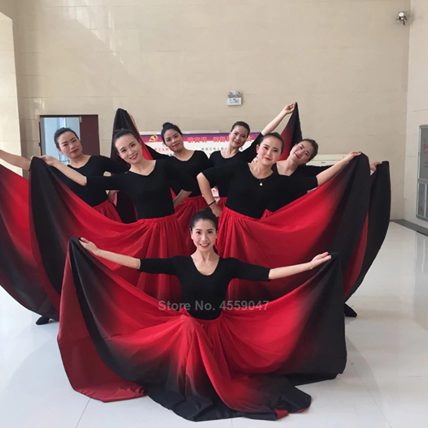 Юбка для фламенко женская, элегантный Гладкий блестящий костюм для танца живота с градиентом и выцветанием, роскошное платье макси для девушек